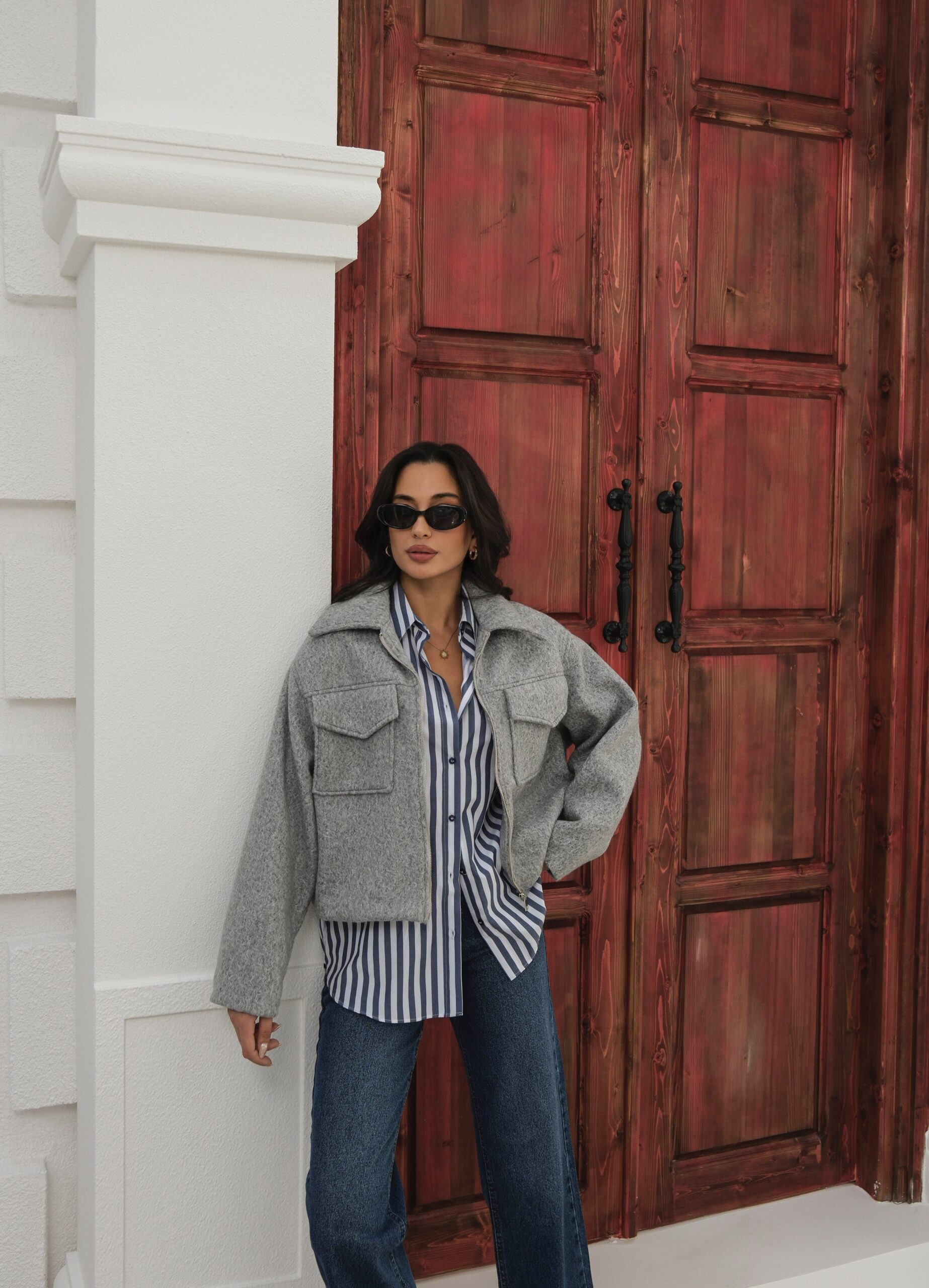 Kapsül Gardırop Buklet Kumaş Mont – Gri