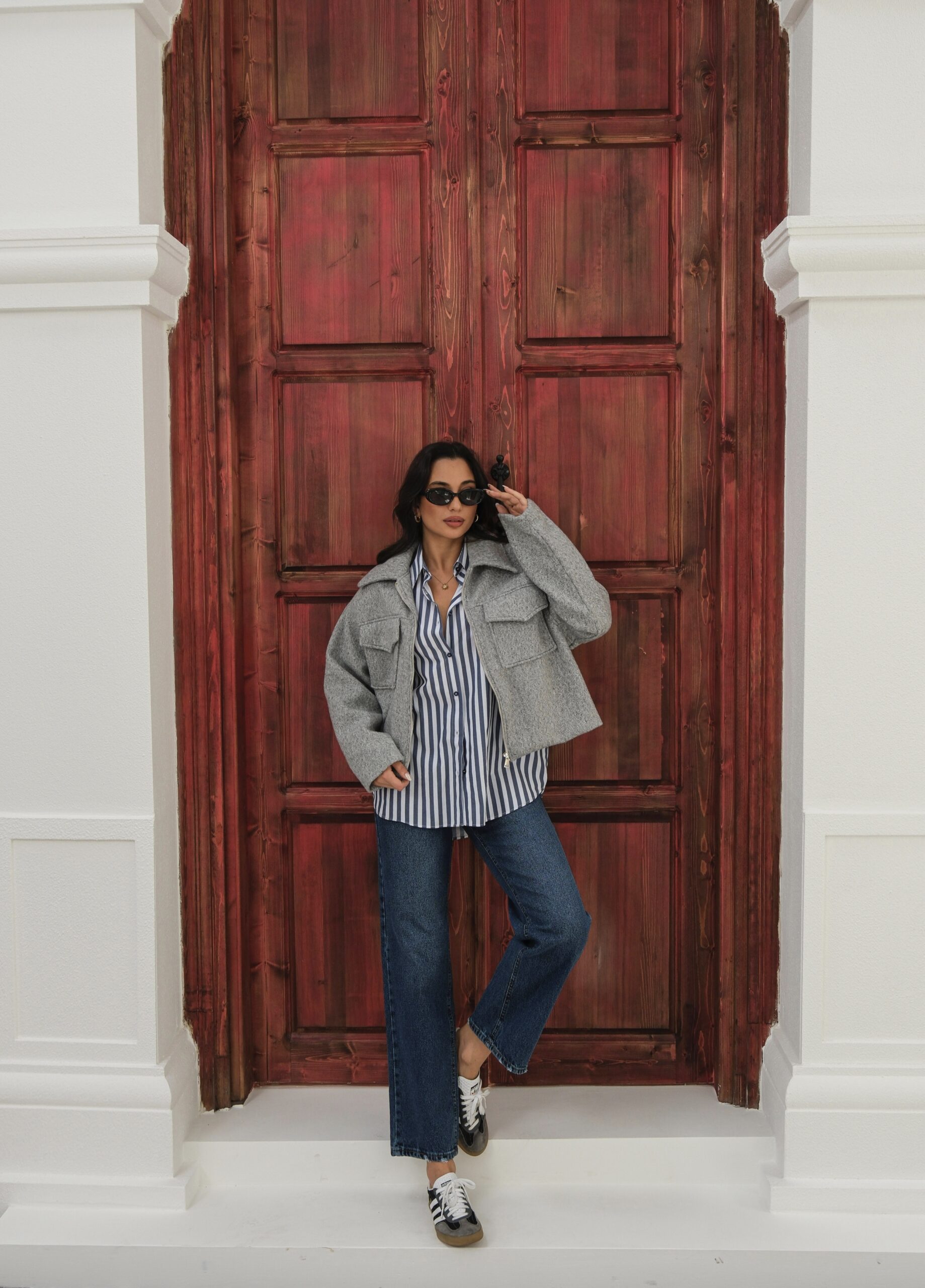 Kapsül Gardırop Buklet Kumaş Mont – Gri