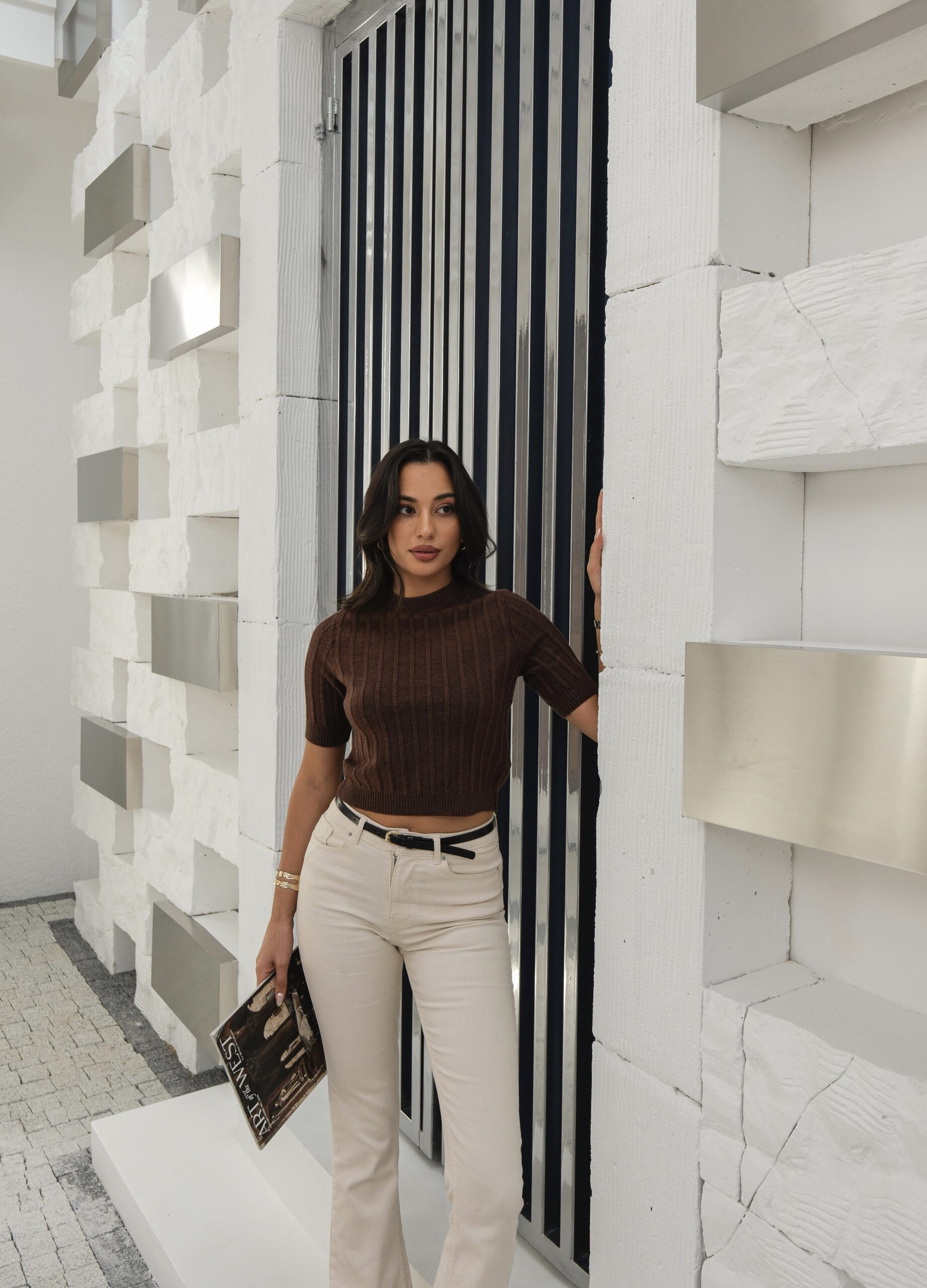 Kapsül Gardırop Yumuşak Dokulu Kısa Kol Kazak – Kahve
