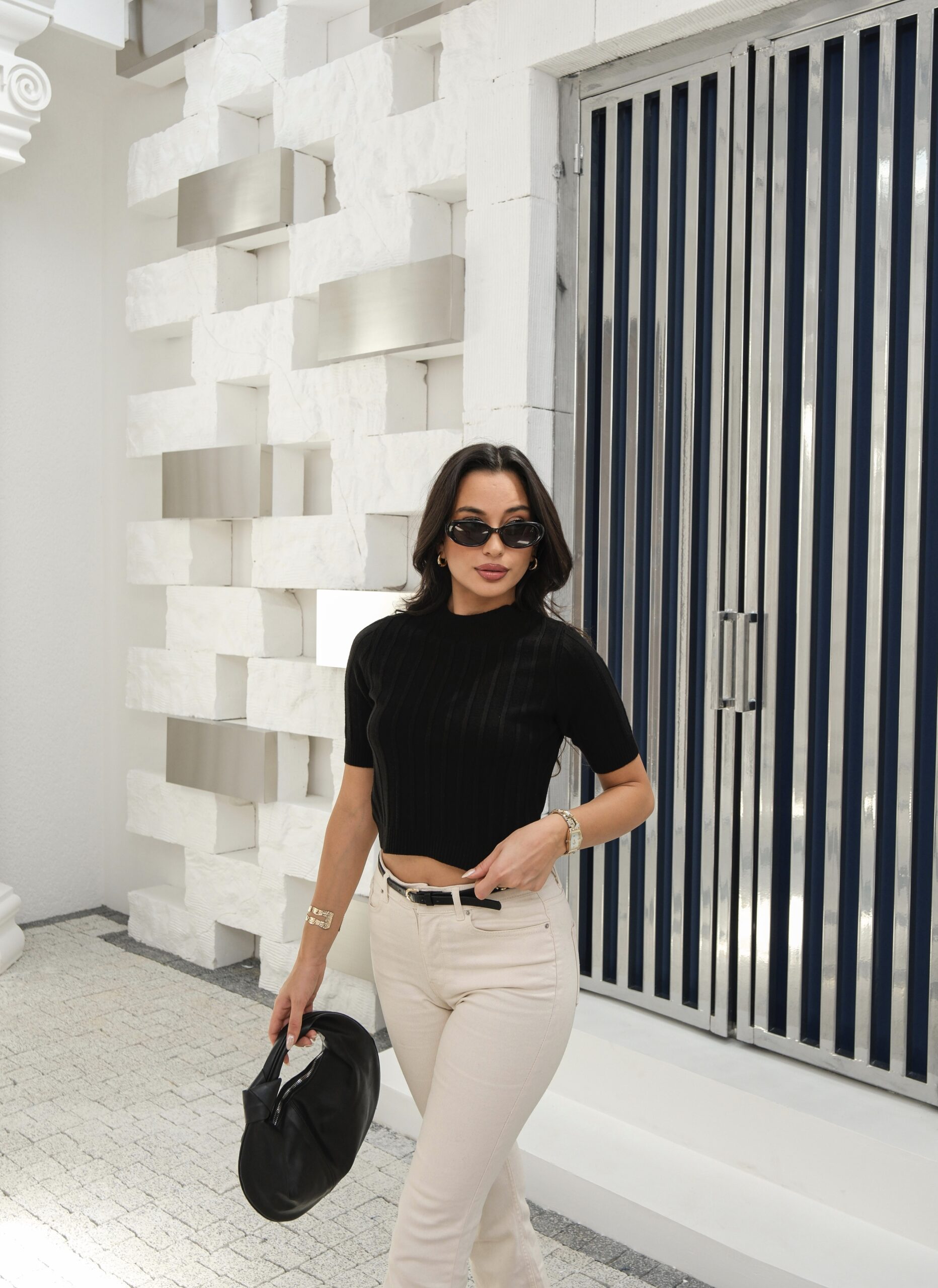 Kapsül Gardırop Yumuşak Dokulu Kısa Kol Kazak – Siyah