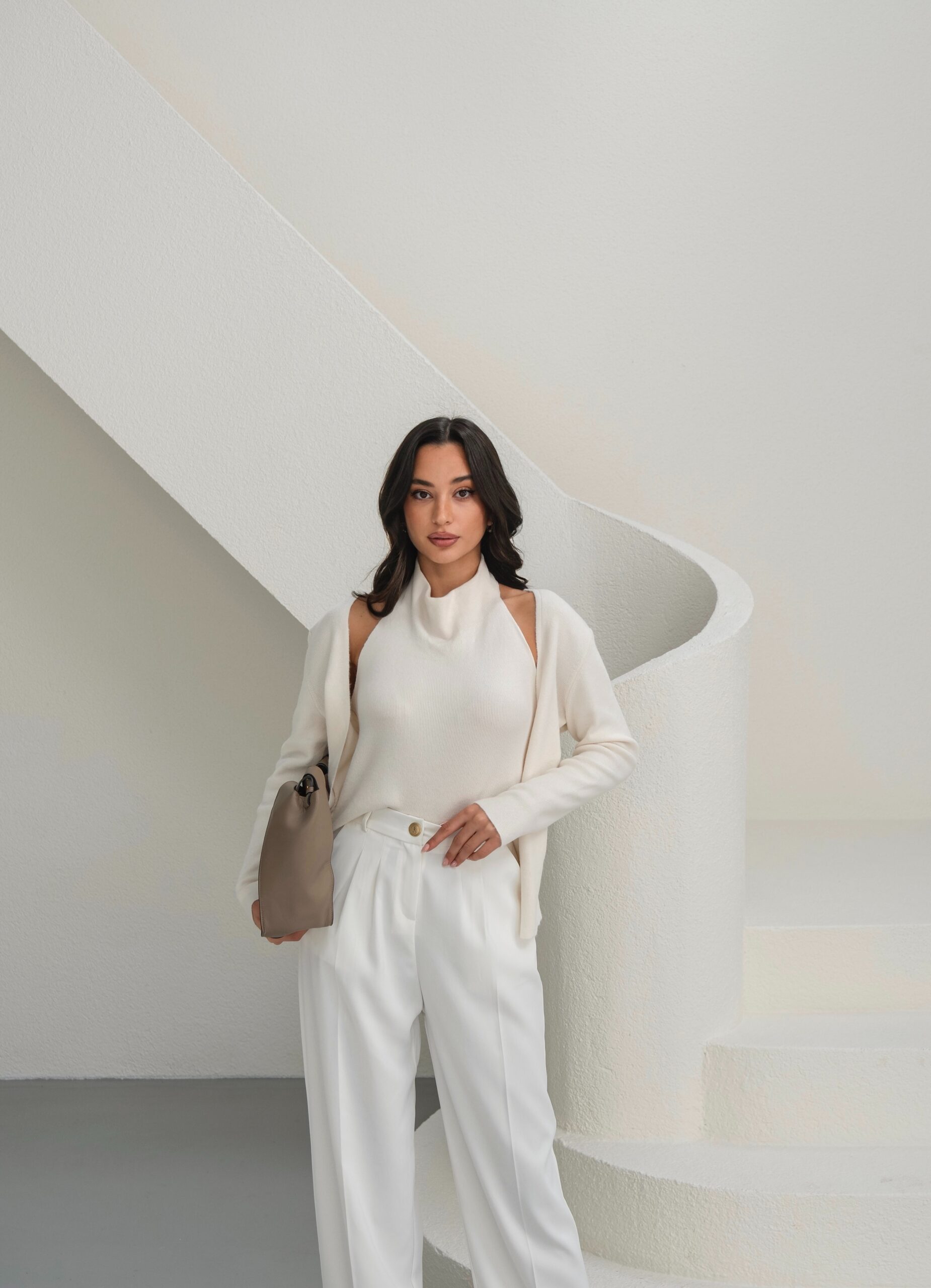 Kapsül Gardırop Kazak-Hırka 2’li Takım – Ekru
