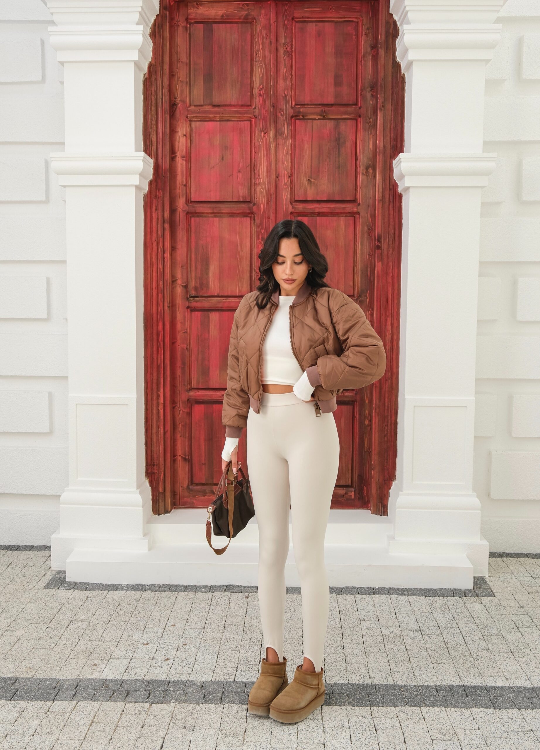 Kapsül Gardırop Kahverengi Crop Bomber Ceket