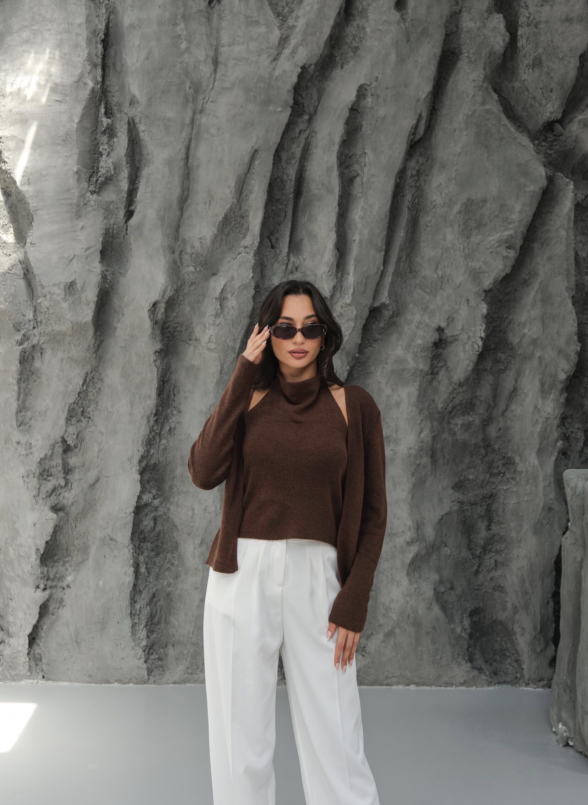 Kapsül Gardırop Kazak-Hırka 2’li Takım – Kahverengi