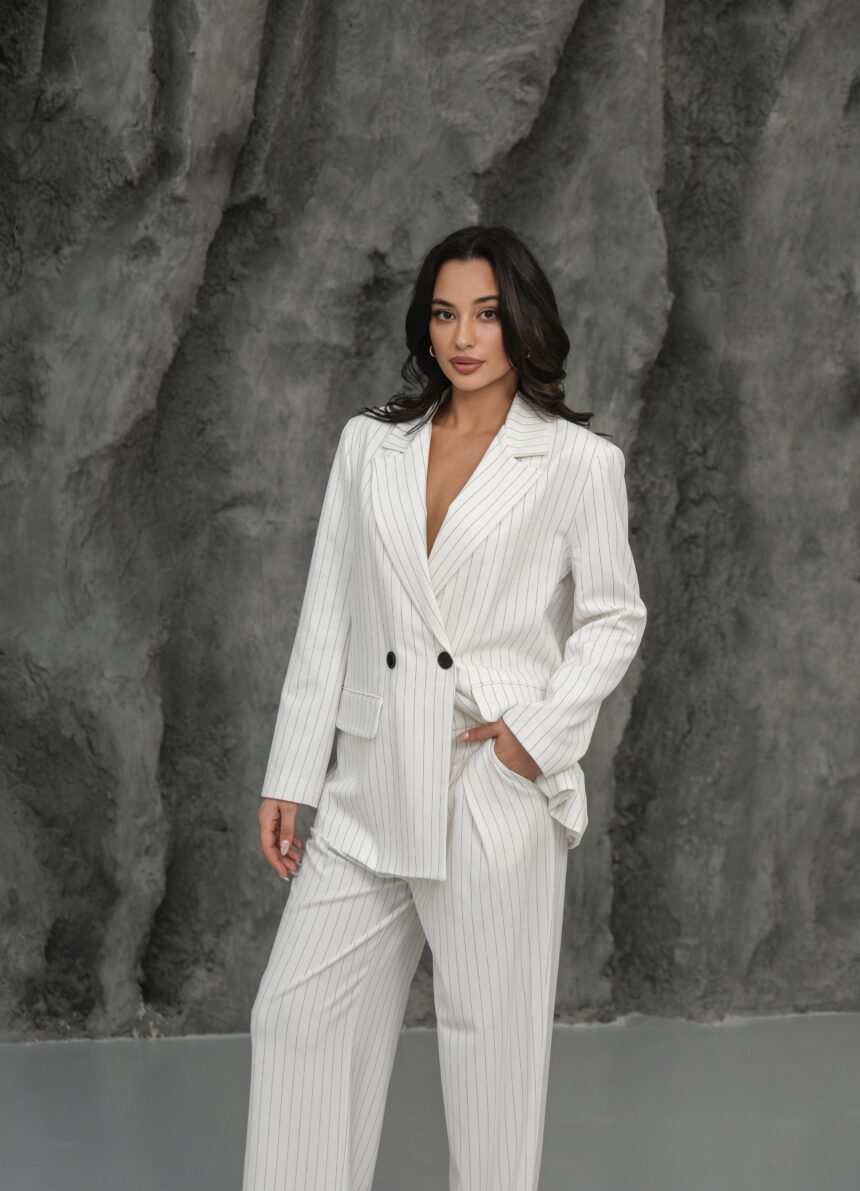 Kapsül Gardırop Çizgili Premium Takım – Beyaz