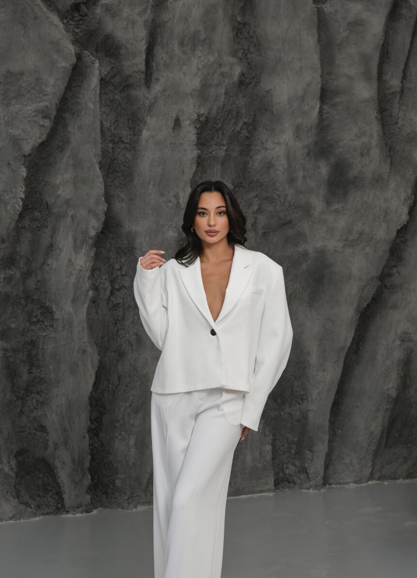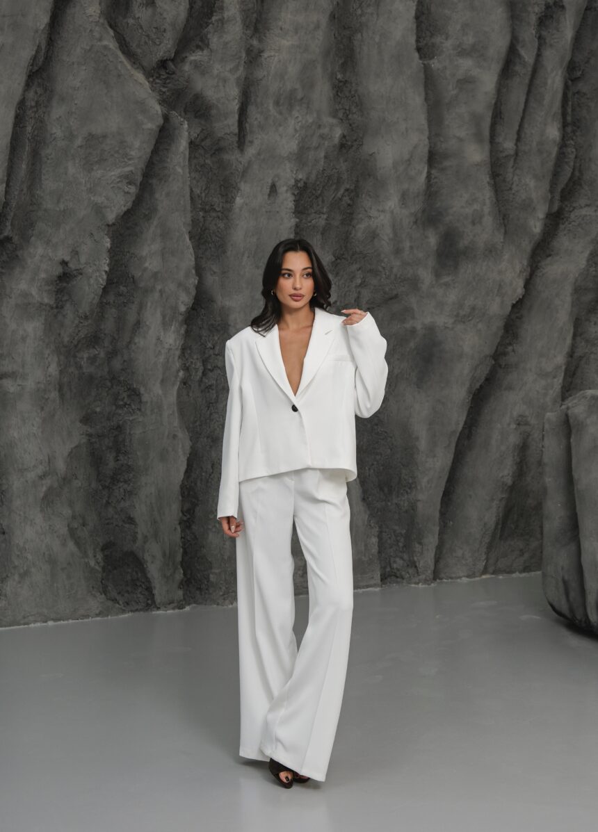 Kapsül Gardırop Crop Ceket Pantolon Takım – Beyaz