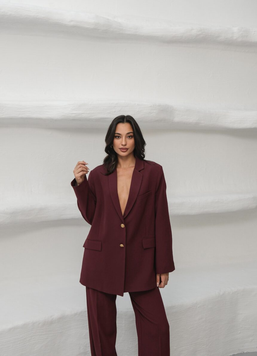 Kapsül Gardırop Gold Düğmeli Polyviscon Ceket Pantolon Takım – Bordo