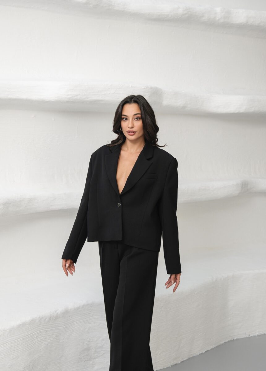 Kapsül Gardırop Crop Ceket Pantolon Takım – Siyah