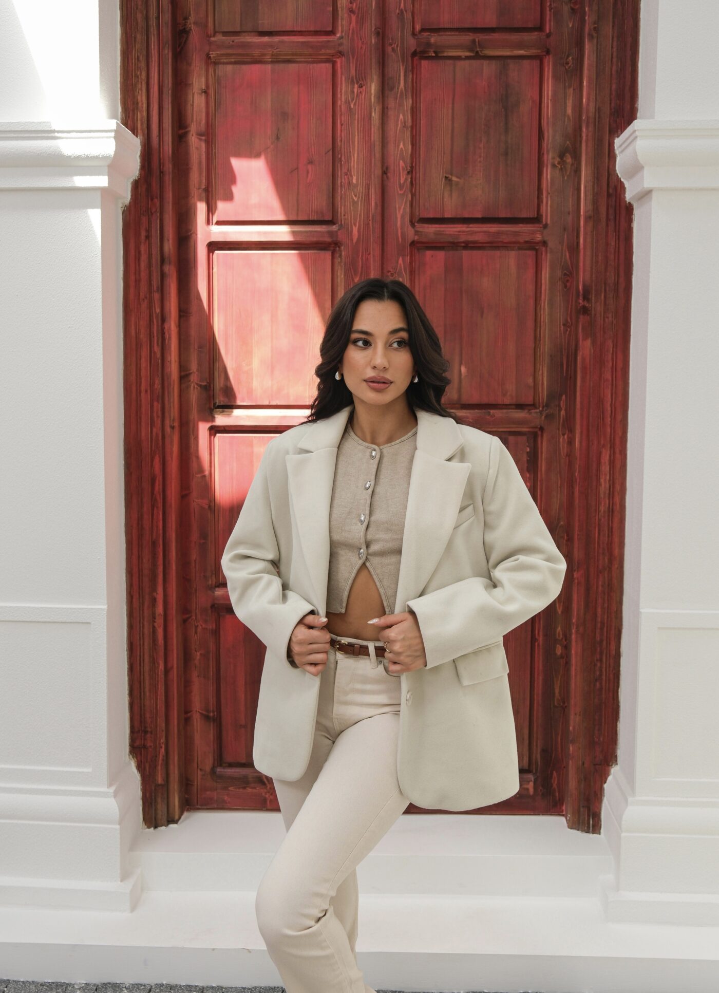 Kapsül Gardırop Astarlı Kaşe Ceket – Ekru