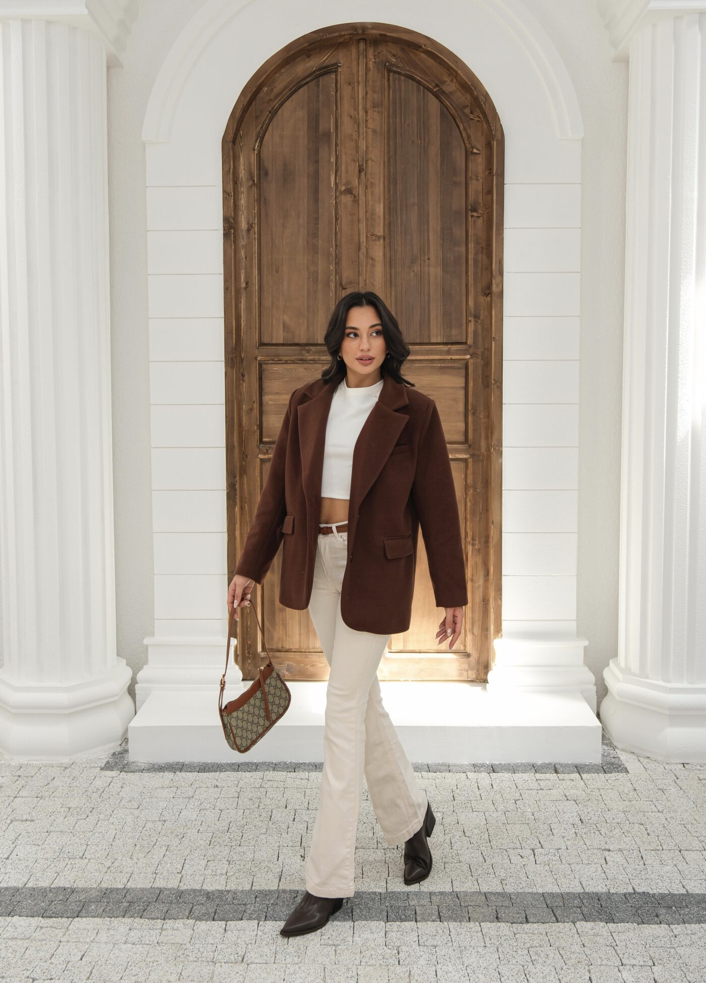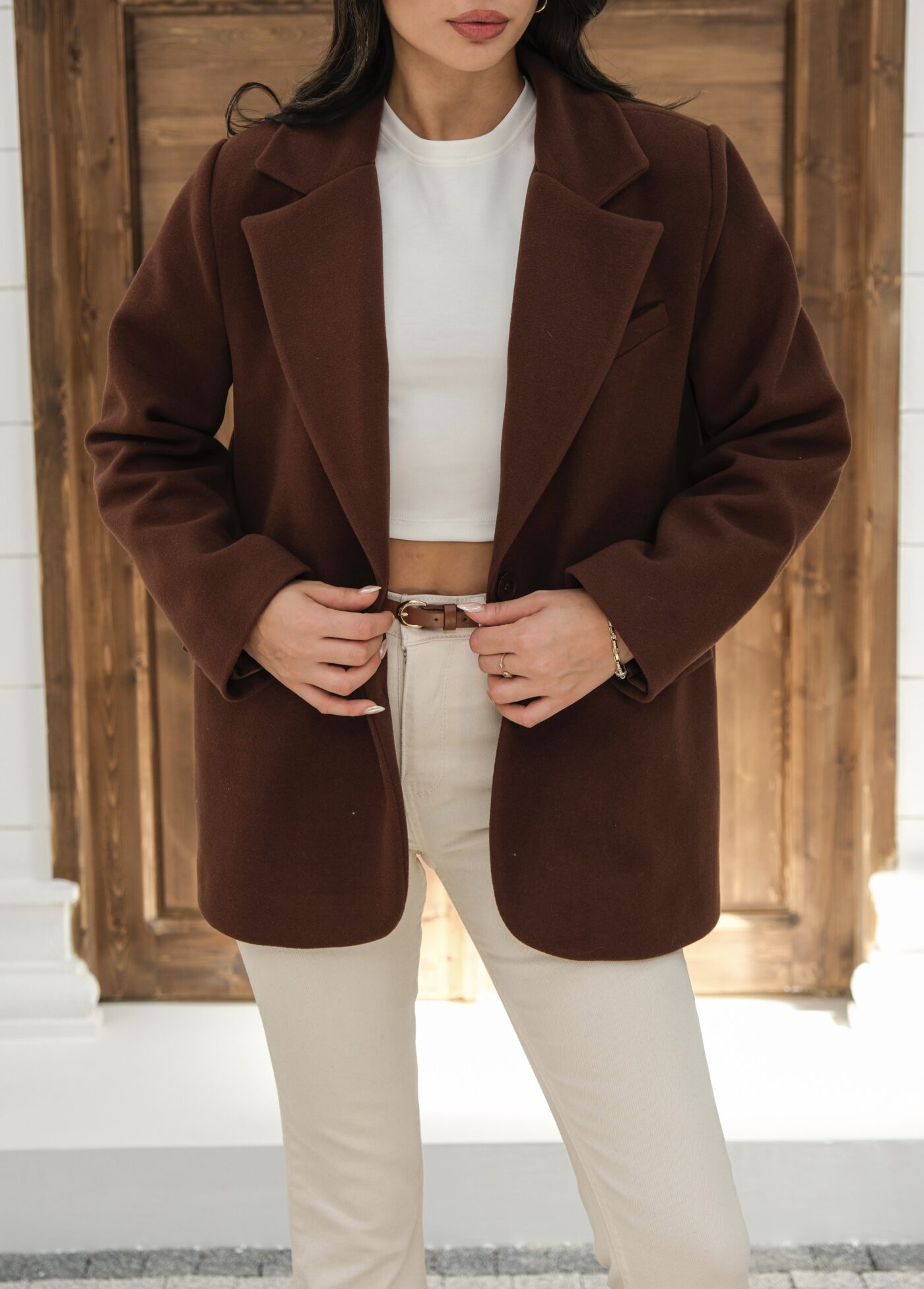 Kapsül Gardırop Astarlı Kaşe Ceket – Kahverengi