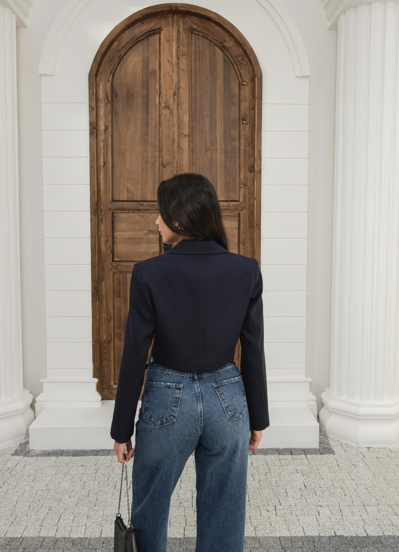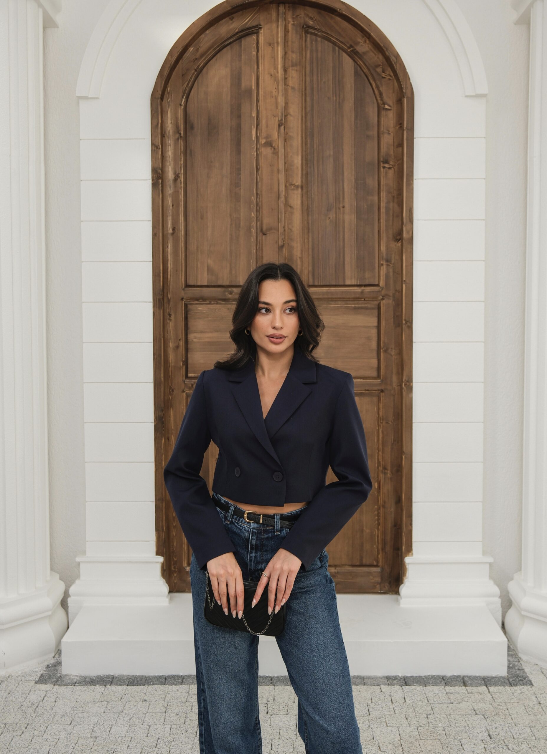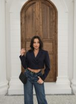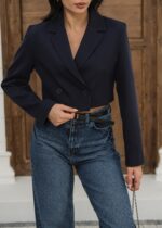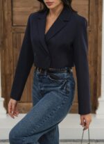 Kapsül Gardırop Astarlı Kruvaze Crop Ceket – Lacivert
