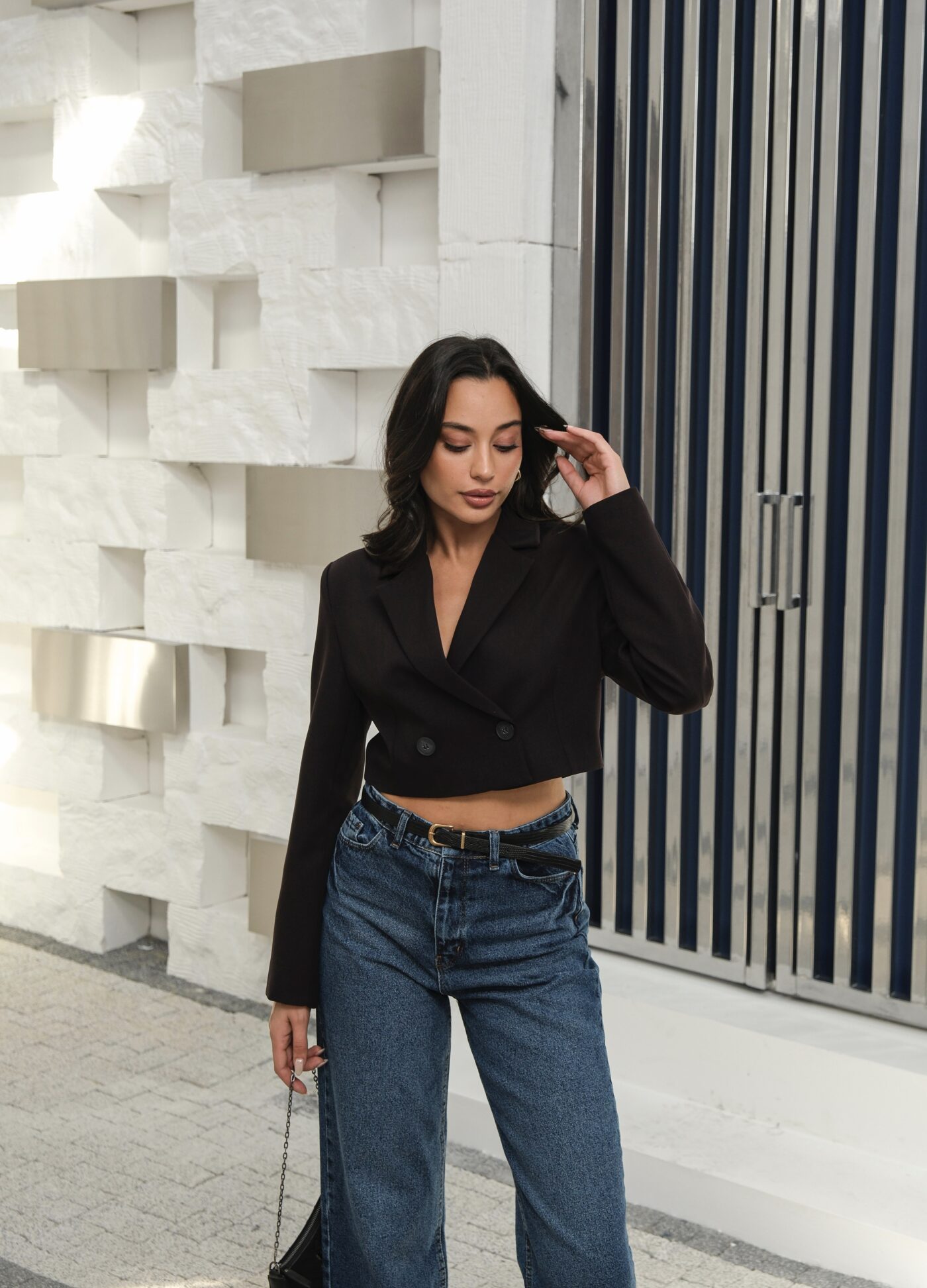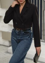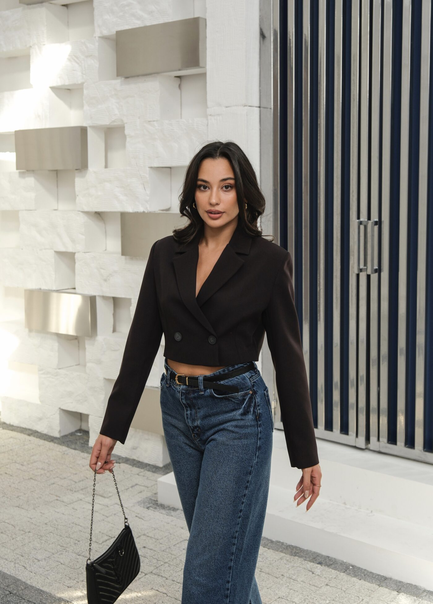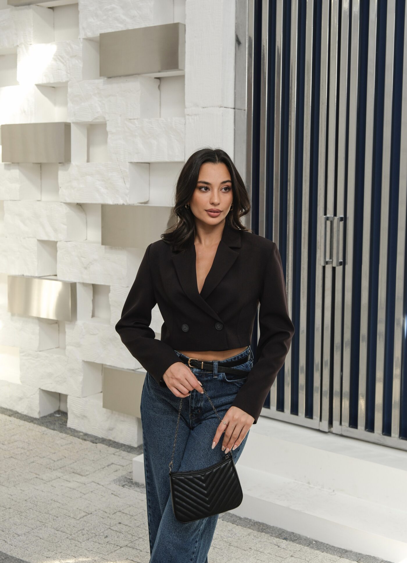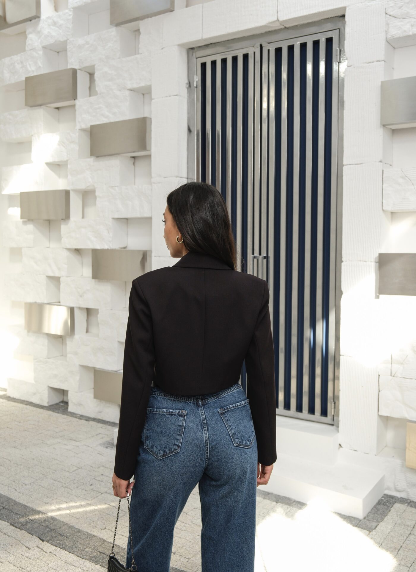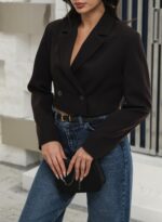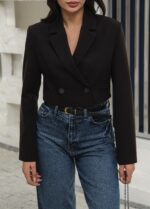 Kapsül Gardırop Astarlı Kruvaze Crop Ceket – Siyah