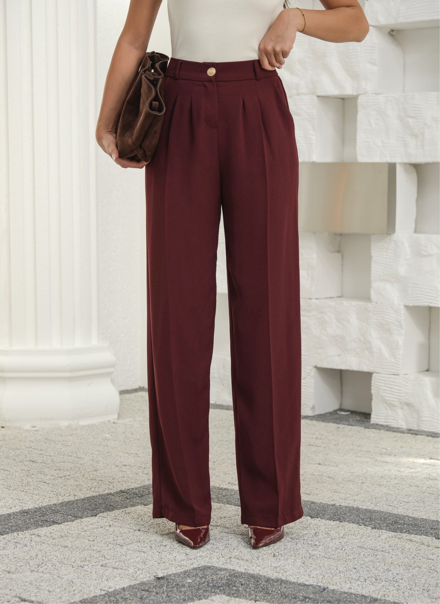 Kapsül Gardırop Bel Lastikli Palazzo Pantolon – Bordo