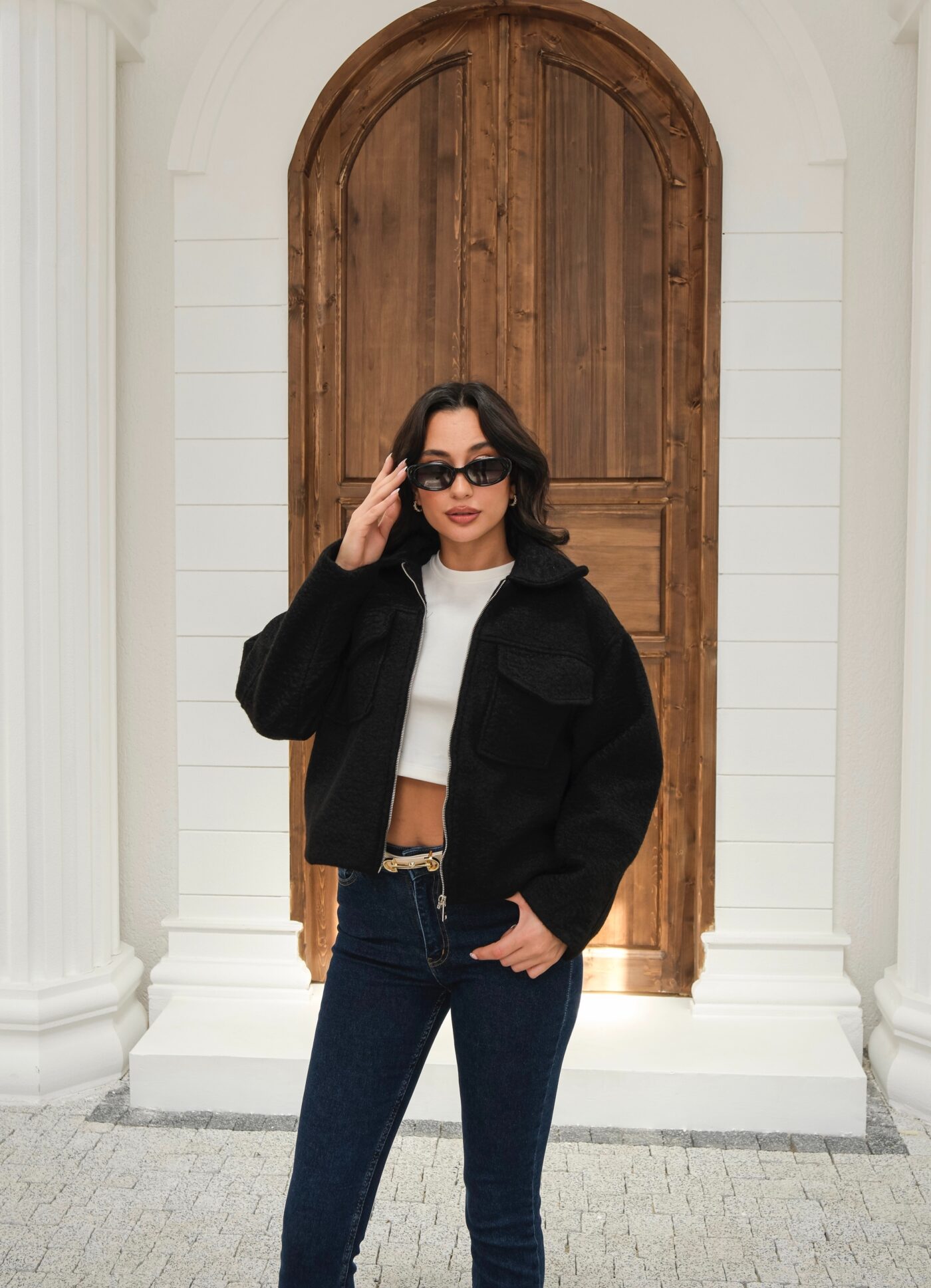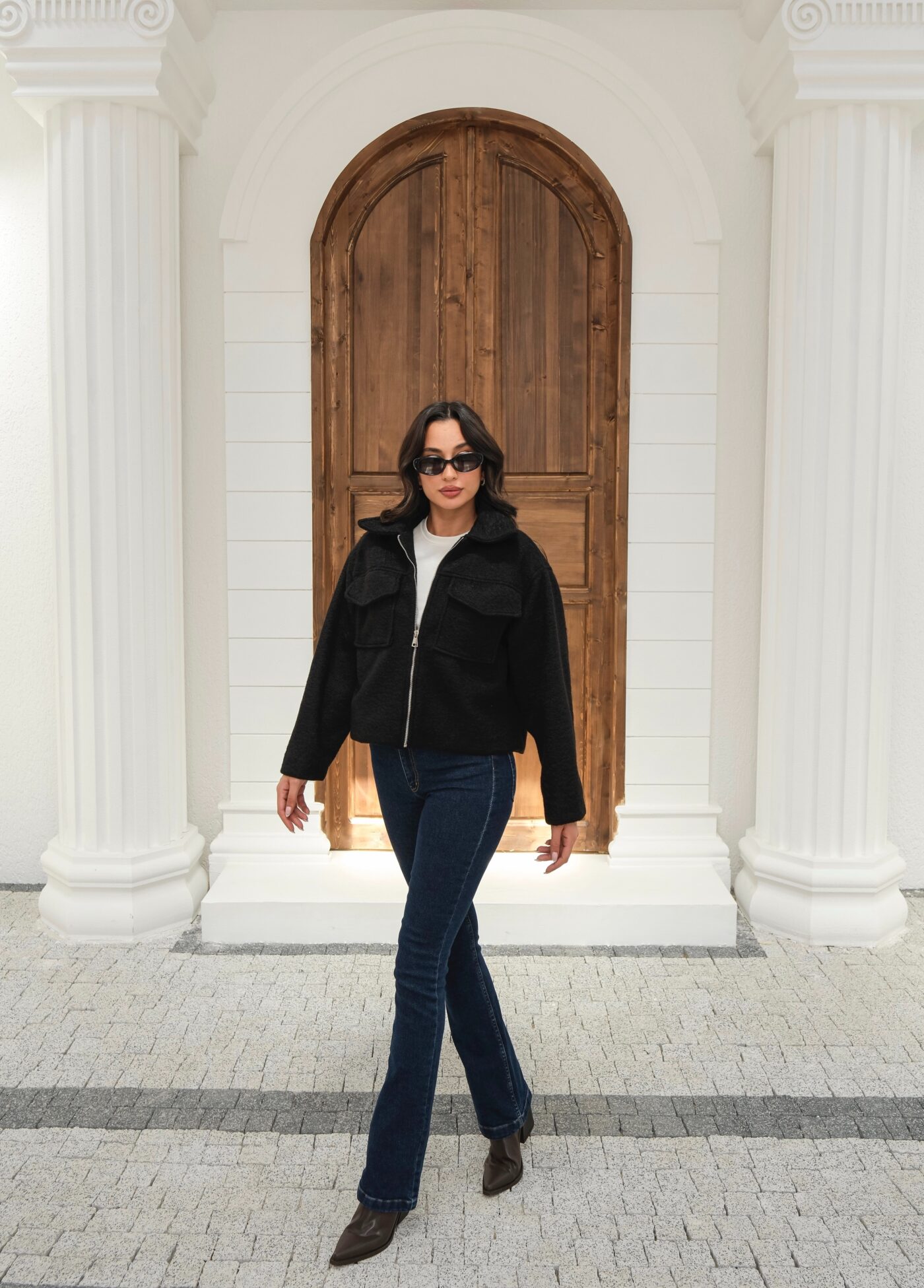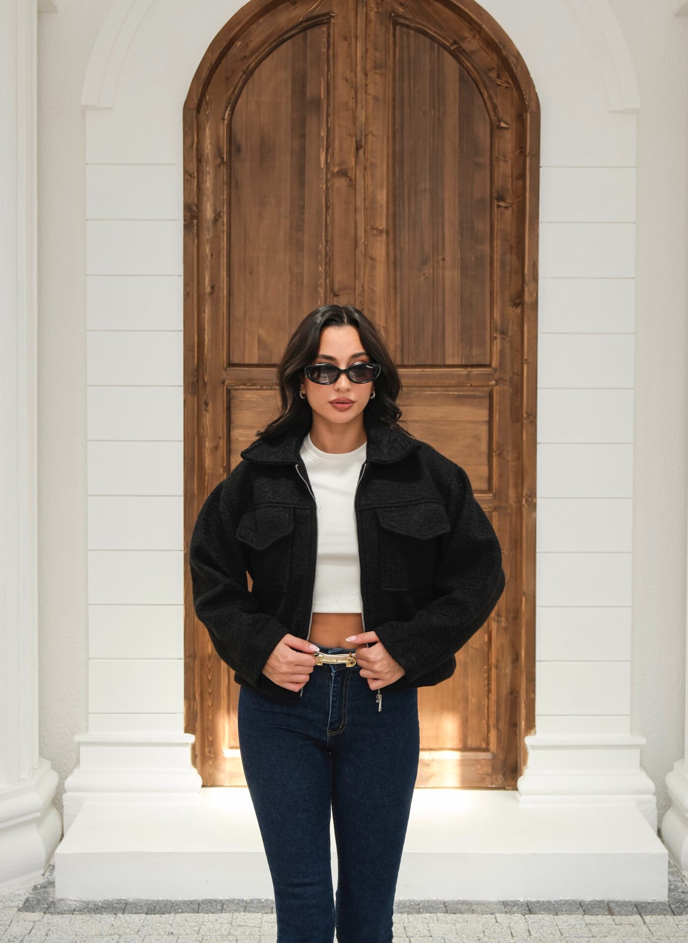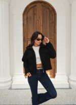 Kapsül Gardırop Buklet Kumaş Mont – Siyah