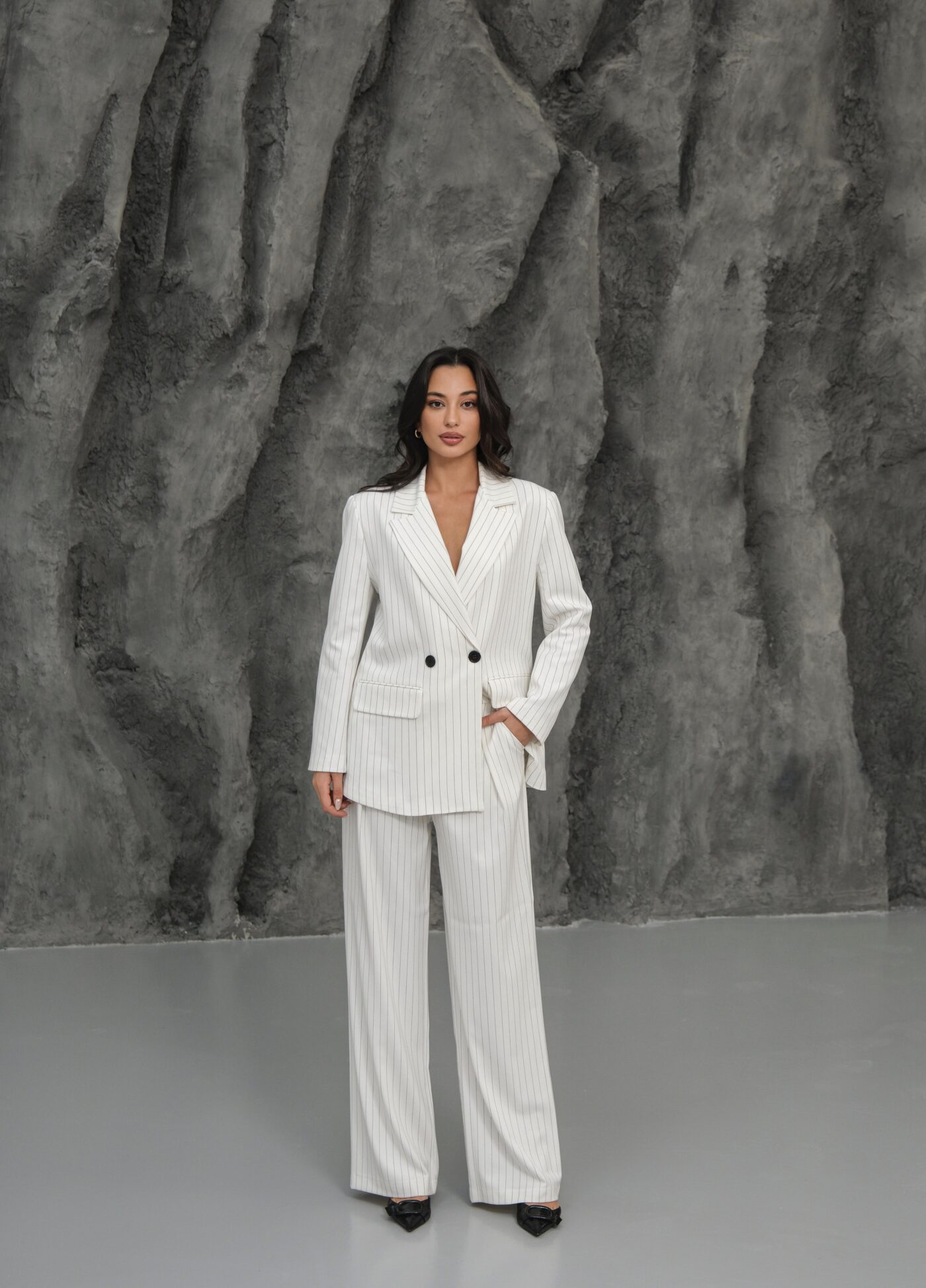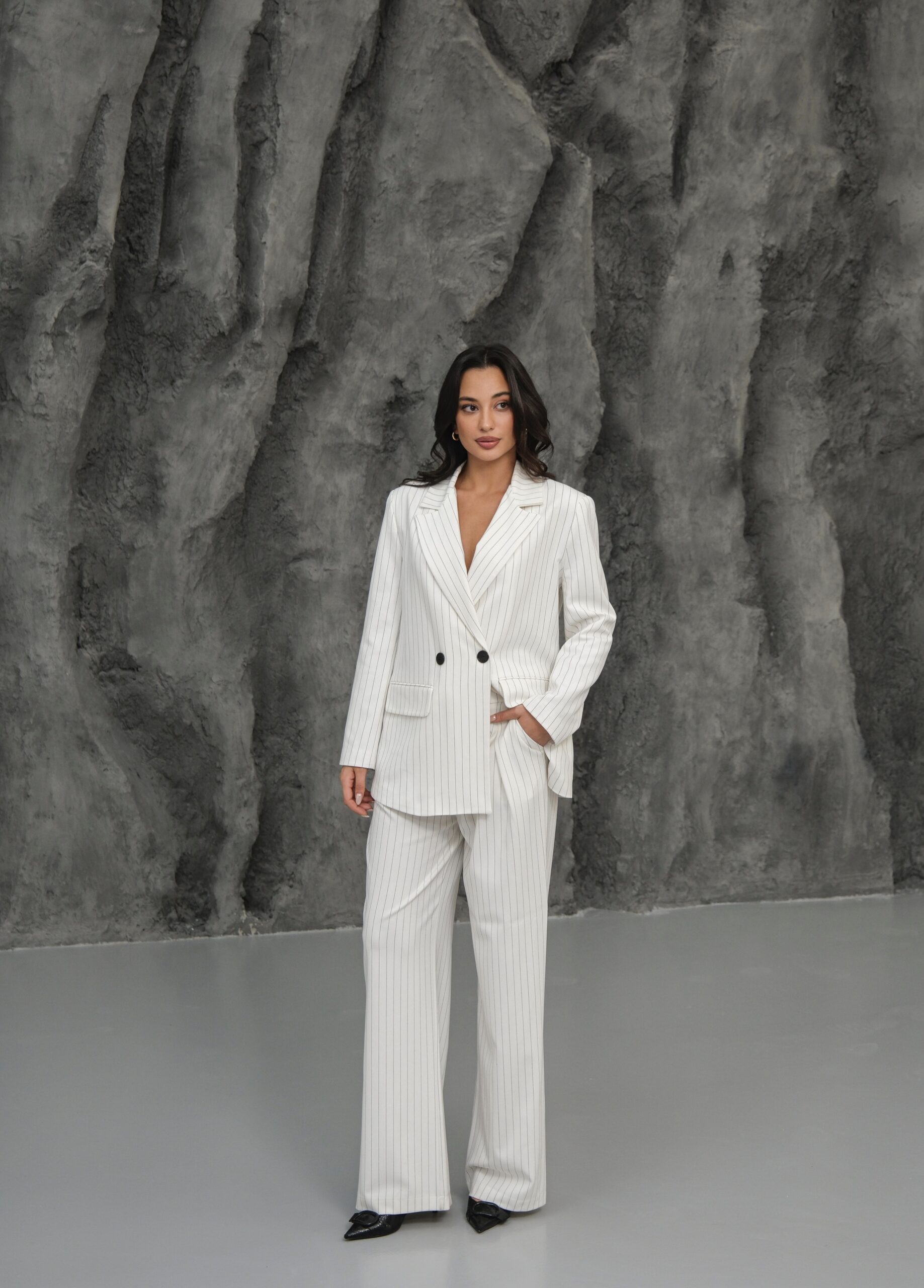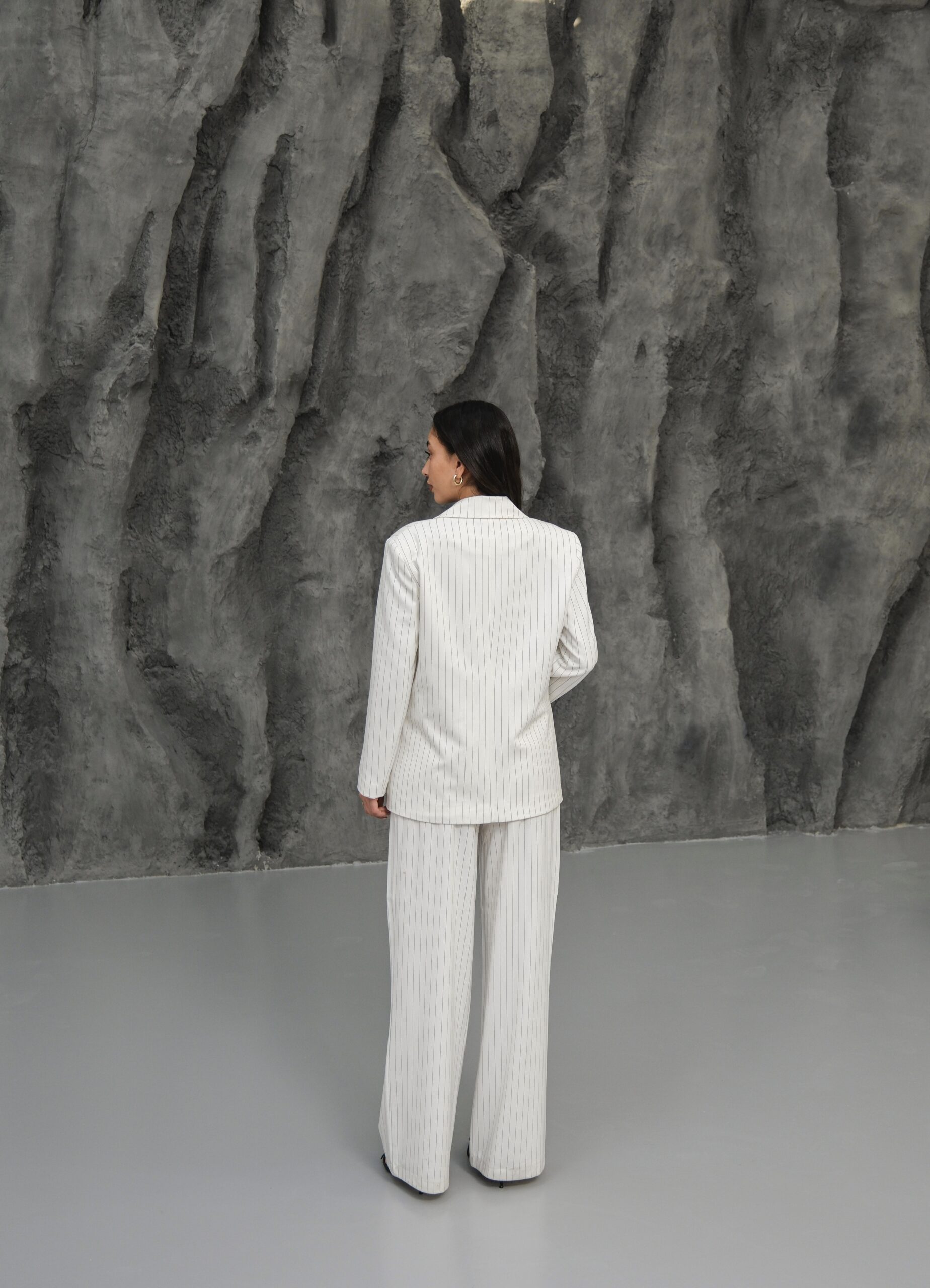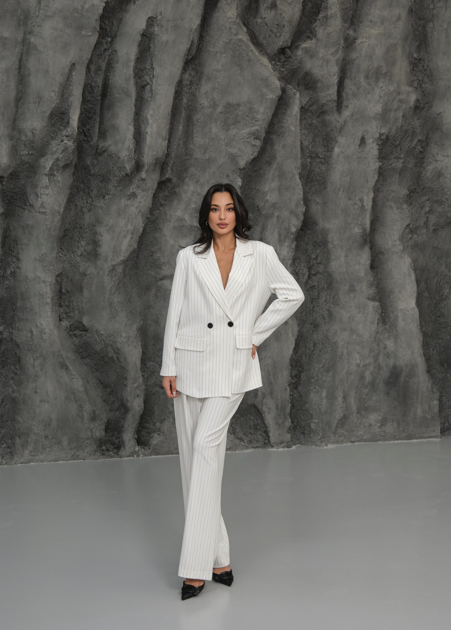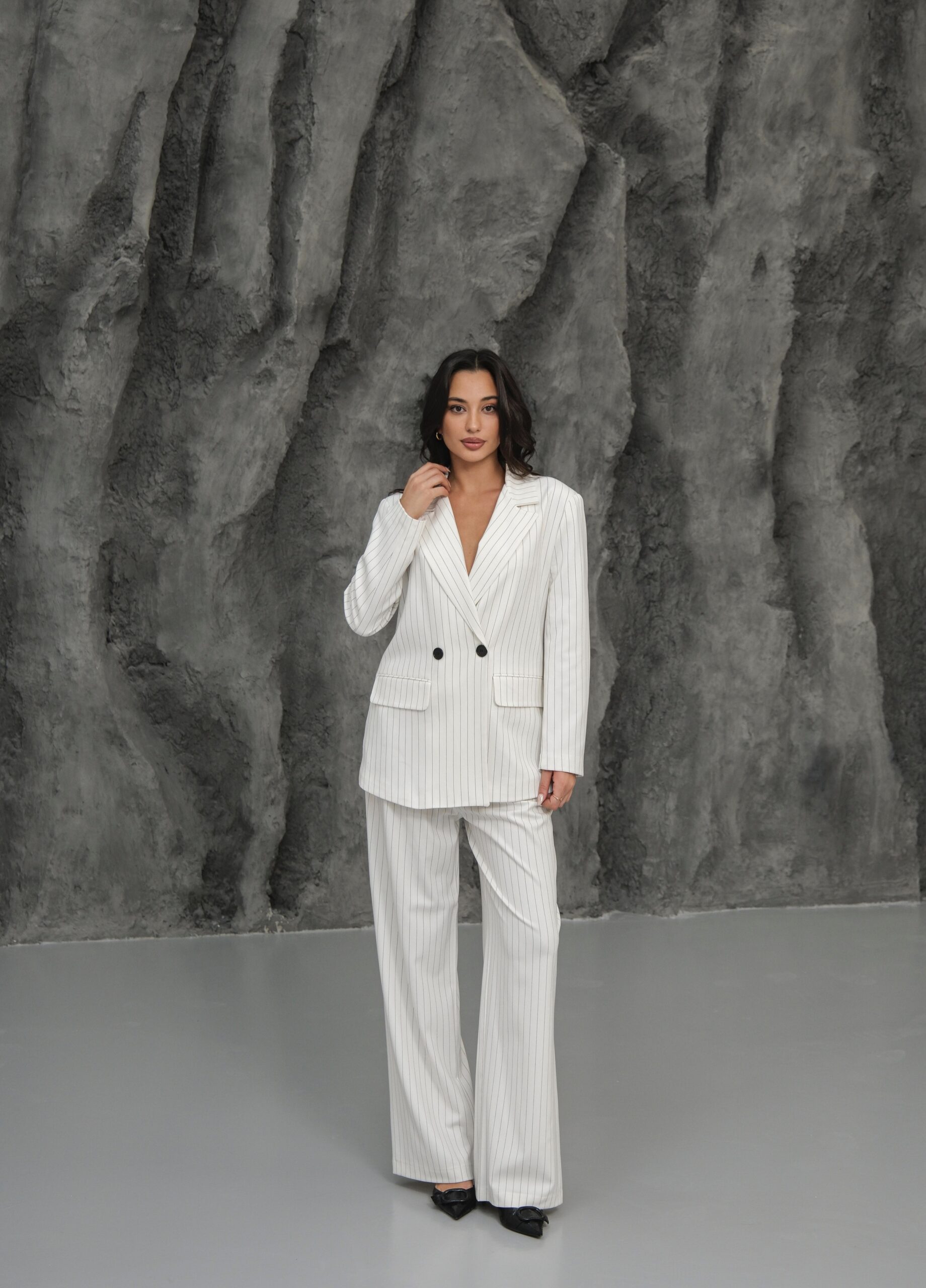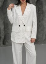 Kapsül Gardırop Çizgili Premium Takım – Beyaz
