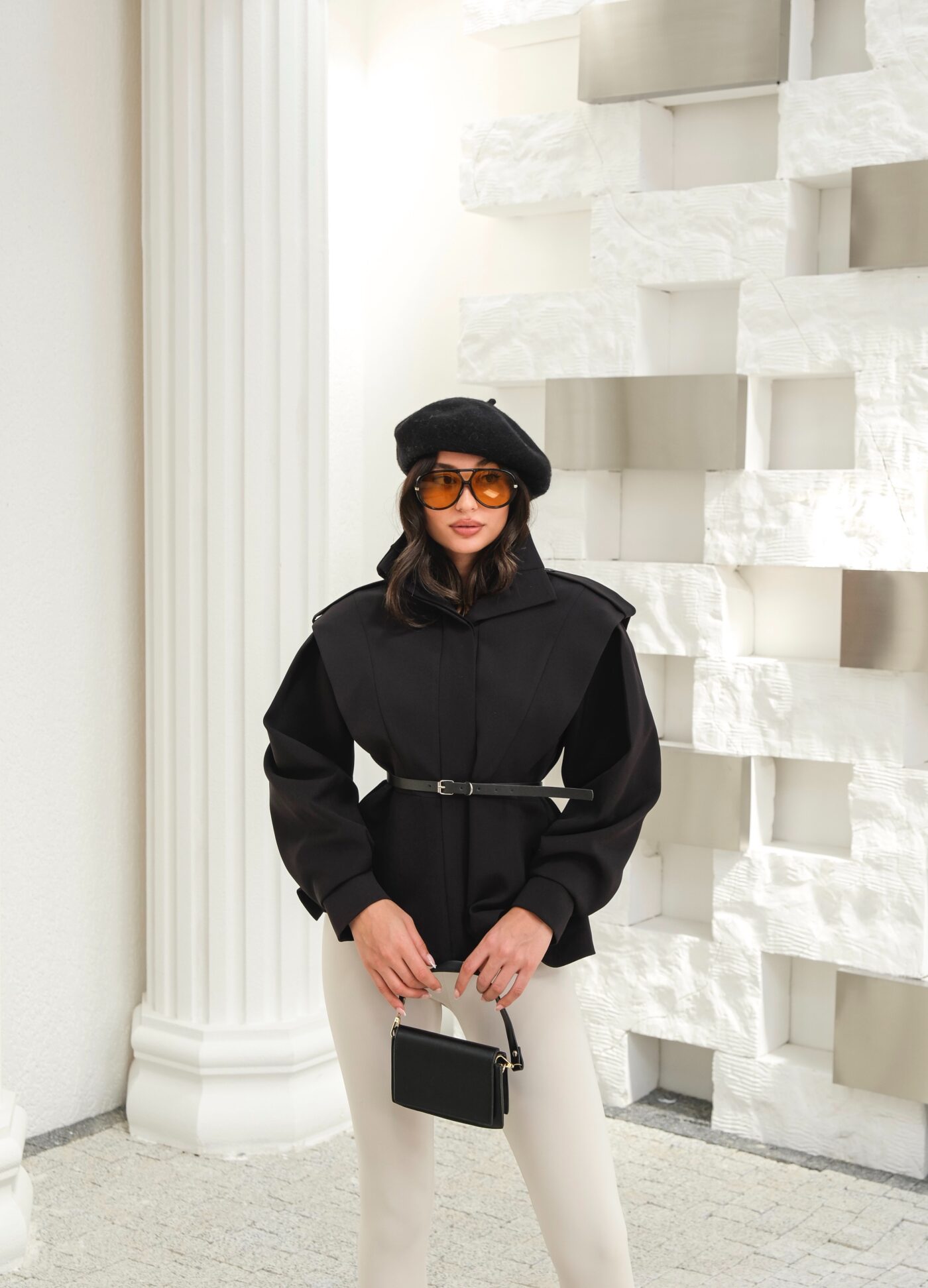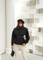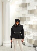 Kapsül Gardırop Dik Yaka Kemerli Kısa Trench Coat – Siyah