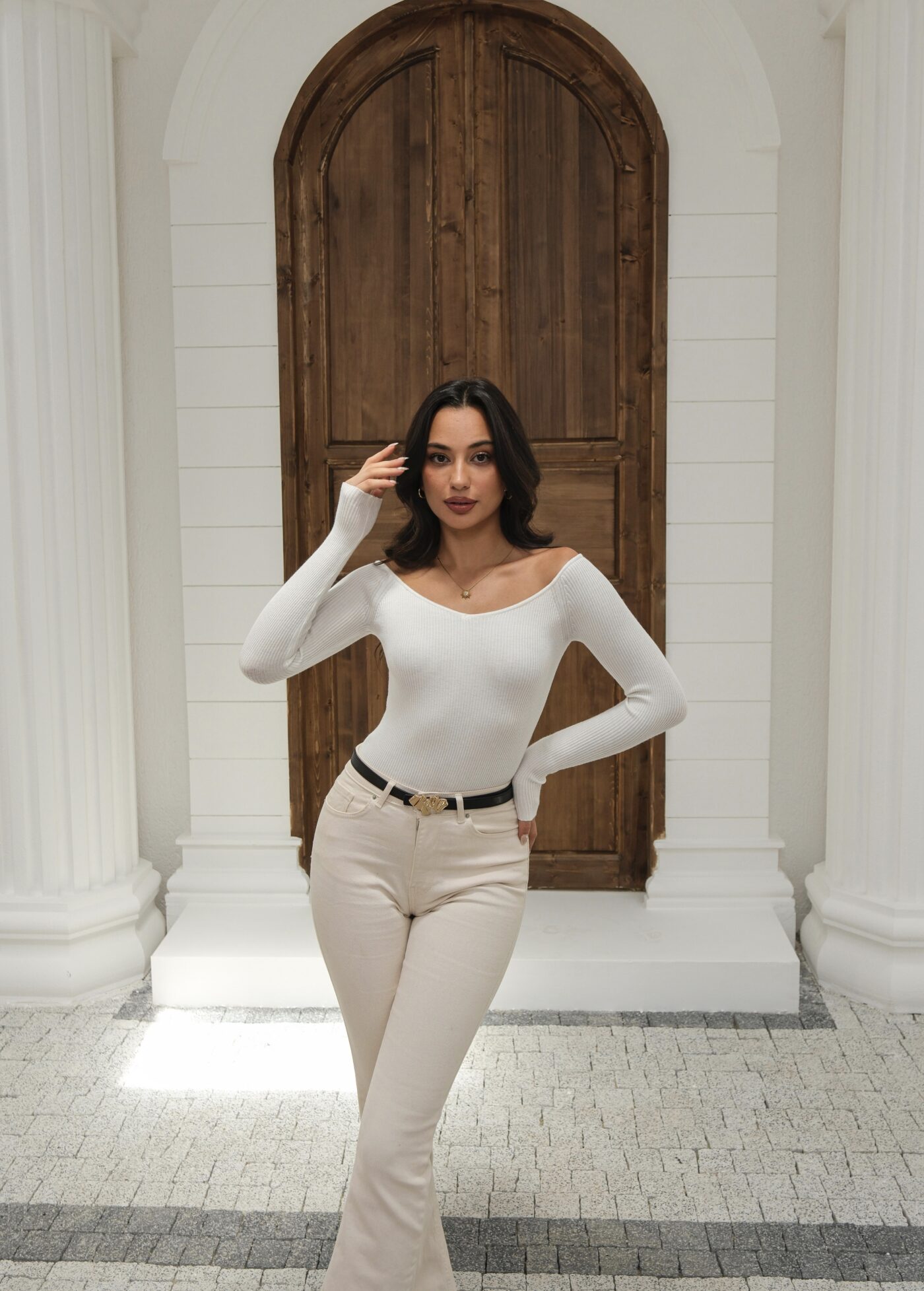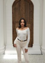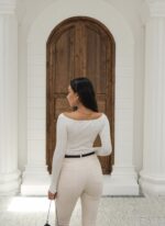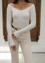 Kapsül Gardırop Geniş V Yaka Fitilli Kazak – Ekru