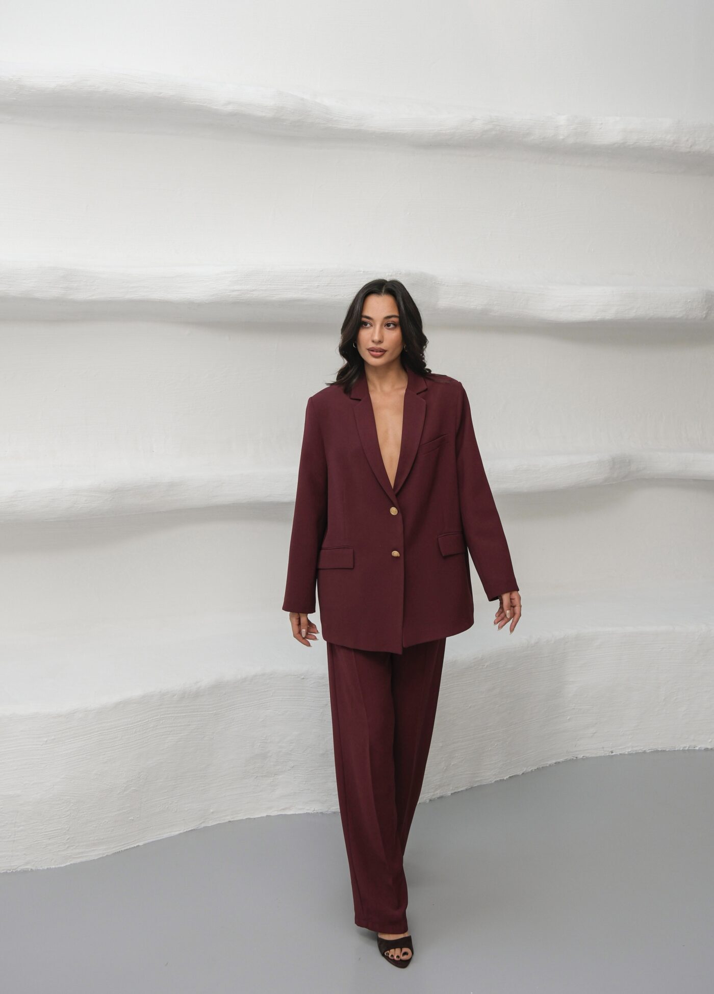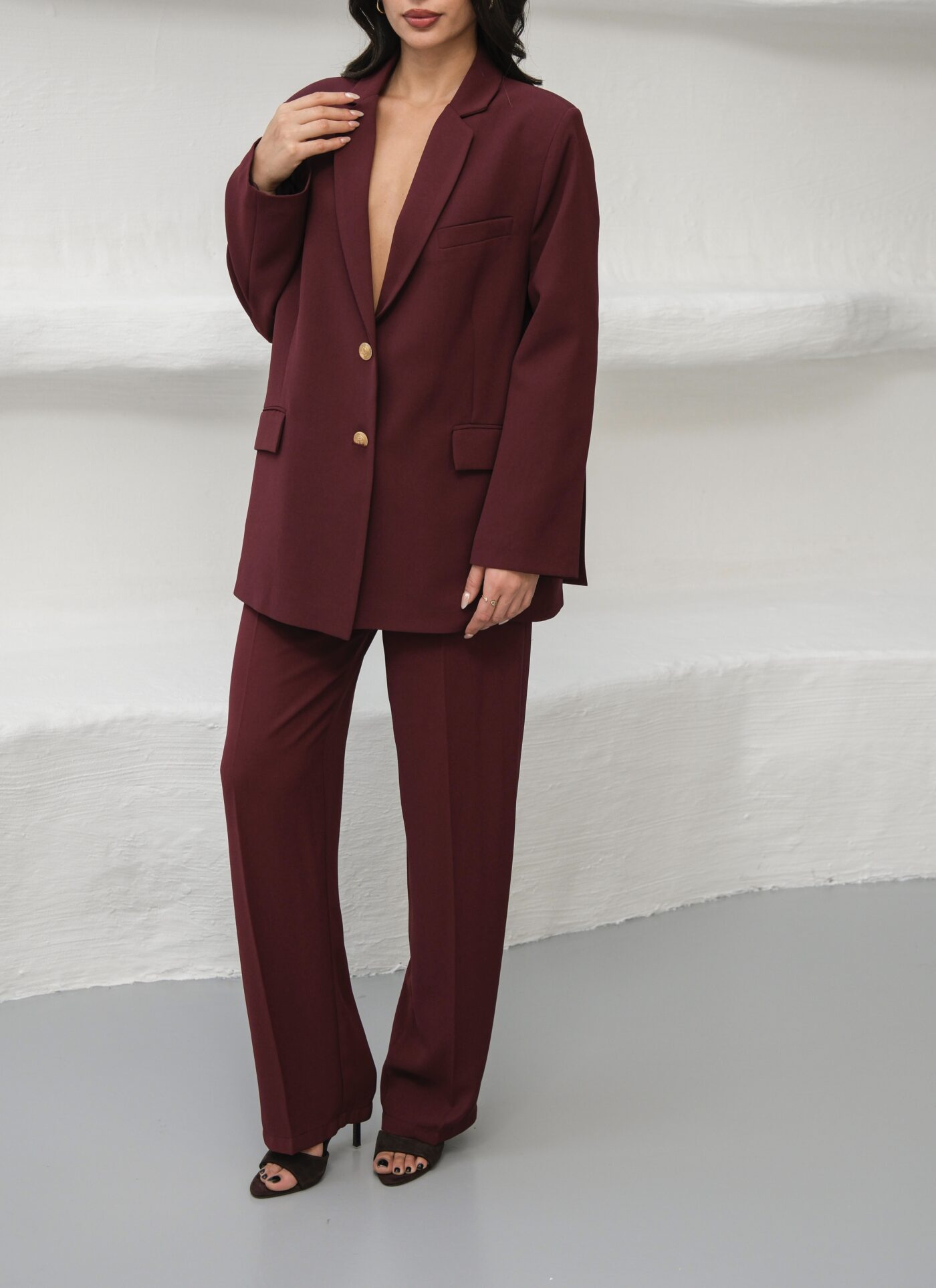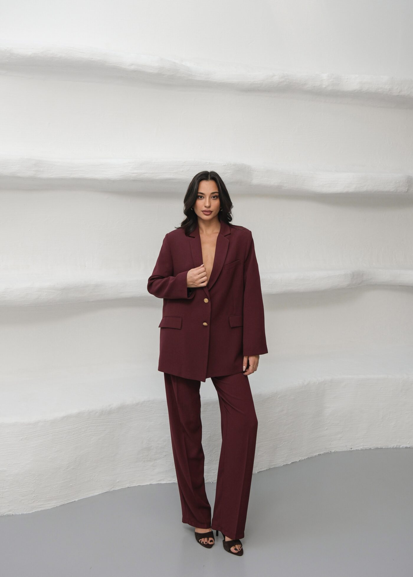 Kapsül Gardırop Gold Düğmeli Polyviscon Ceket Pantolon Takım – Bordo