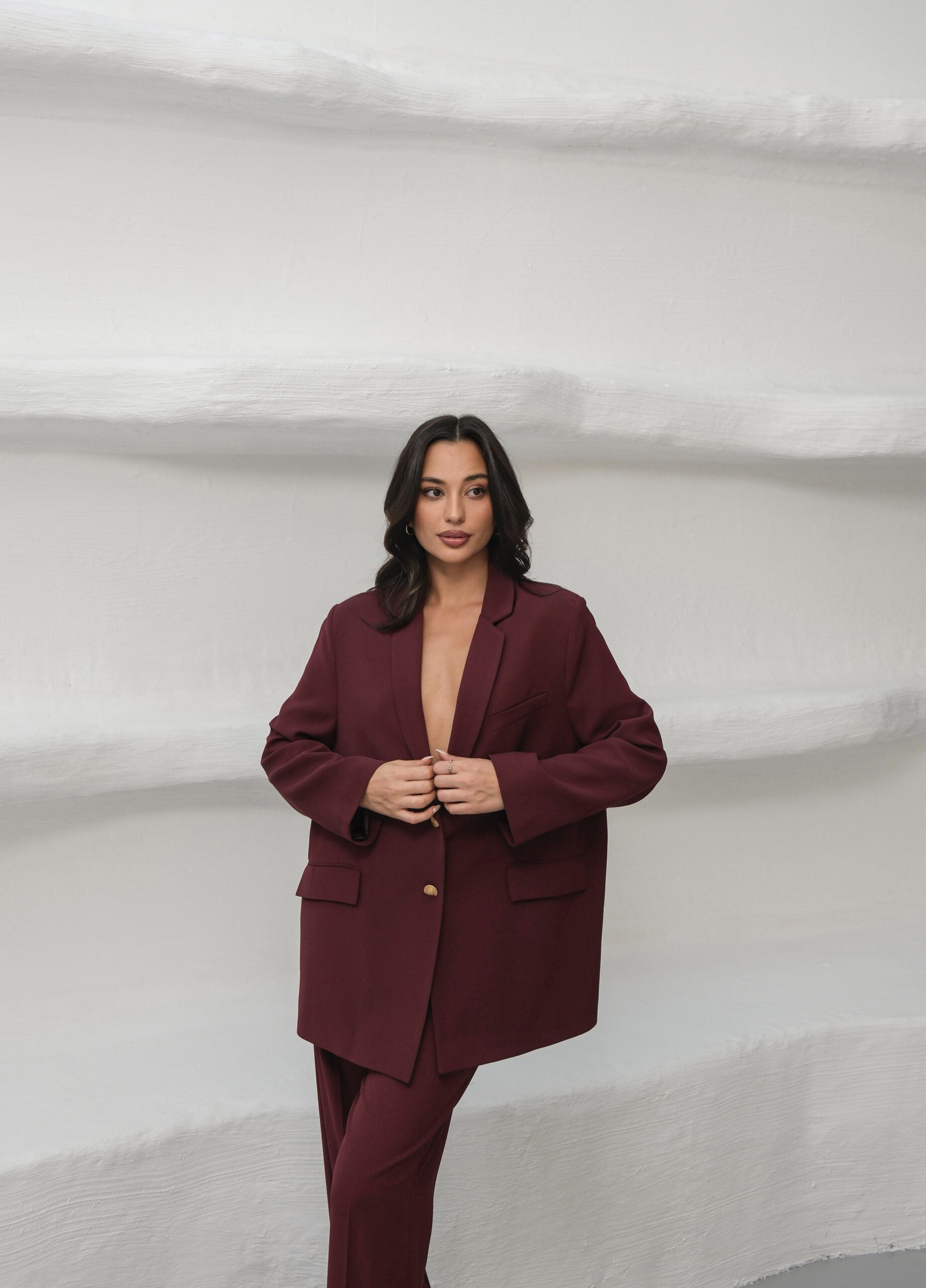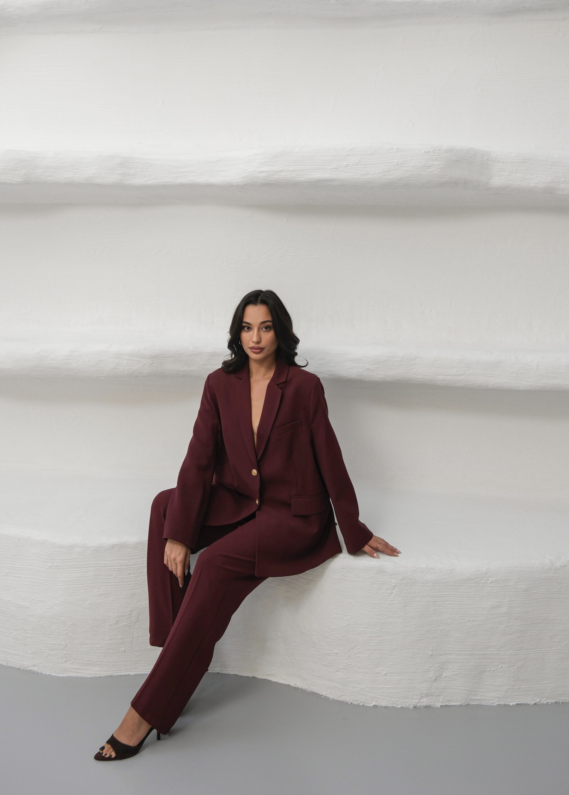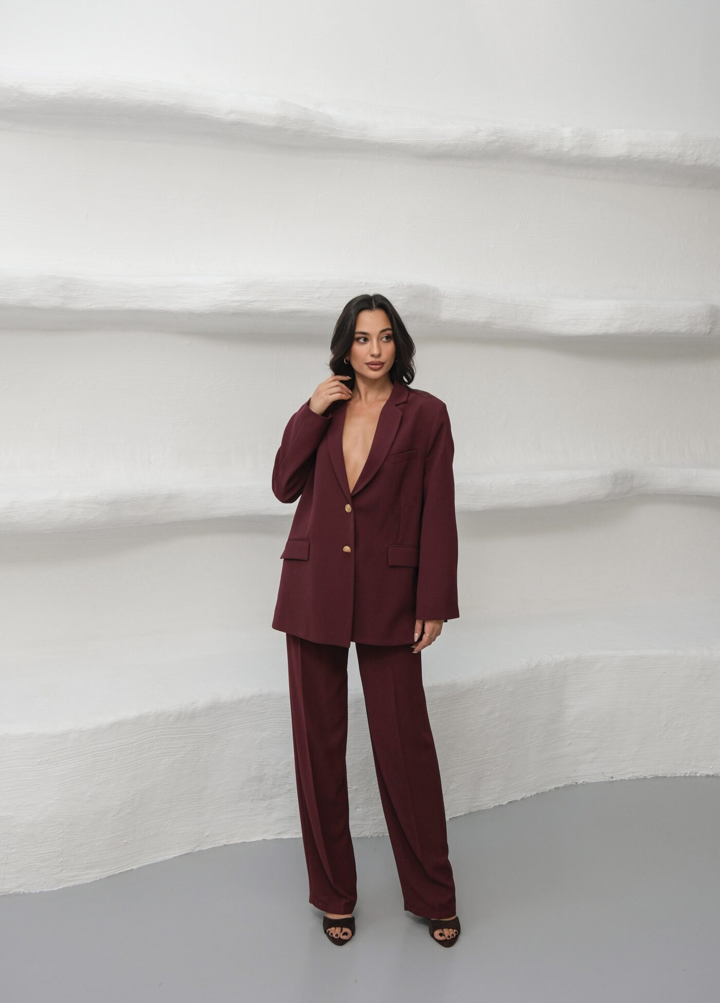 Kapsül Gardırop Gold Düğmeli Polyviscon Ceket Pantolon Takım – Bordo