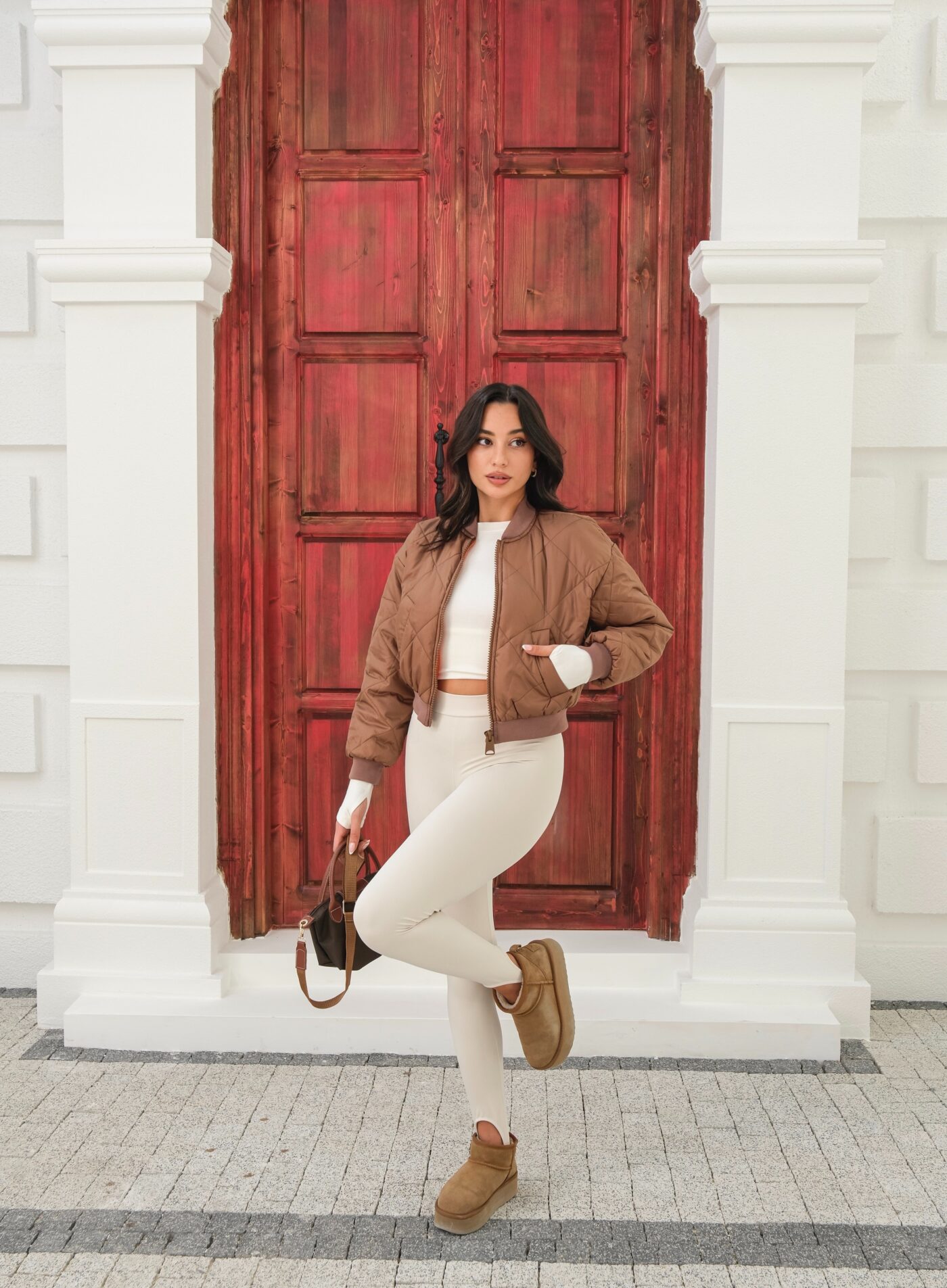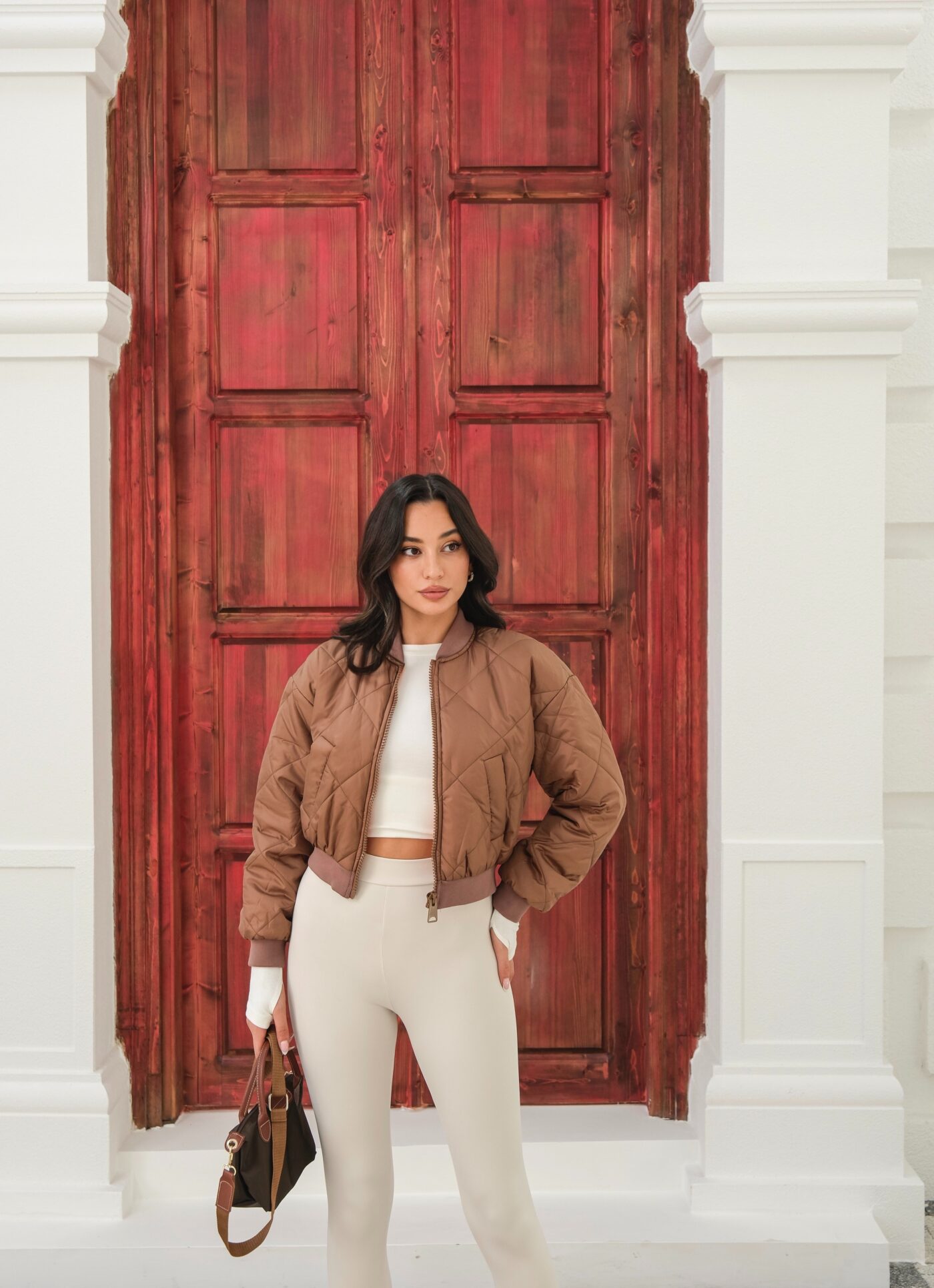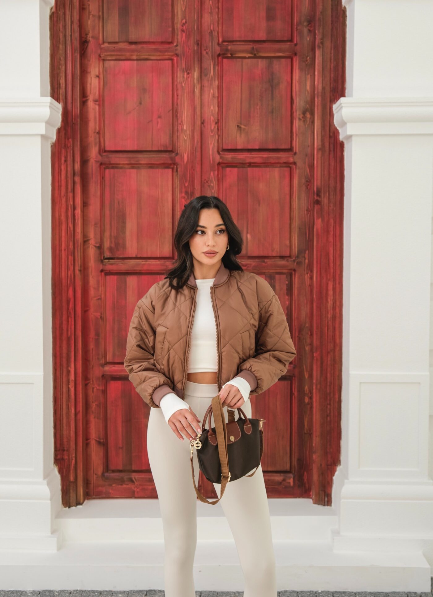 Kapsül Gardırop Kahverengi Crop Bomber Ceket