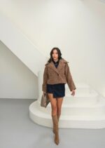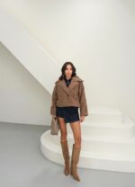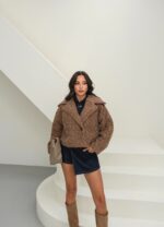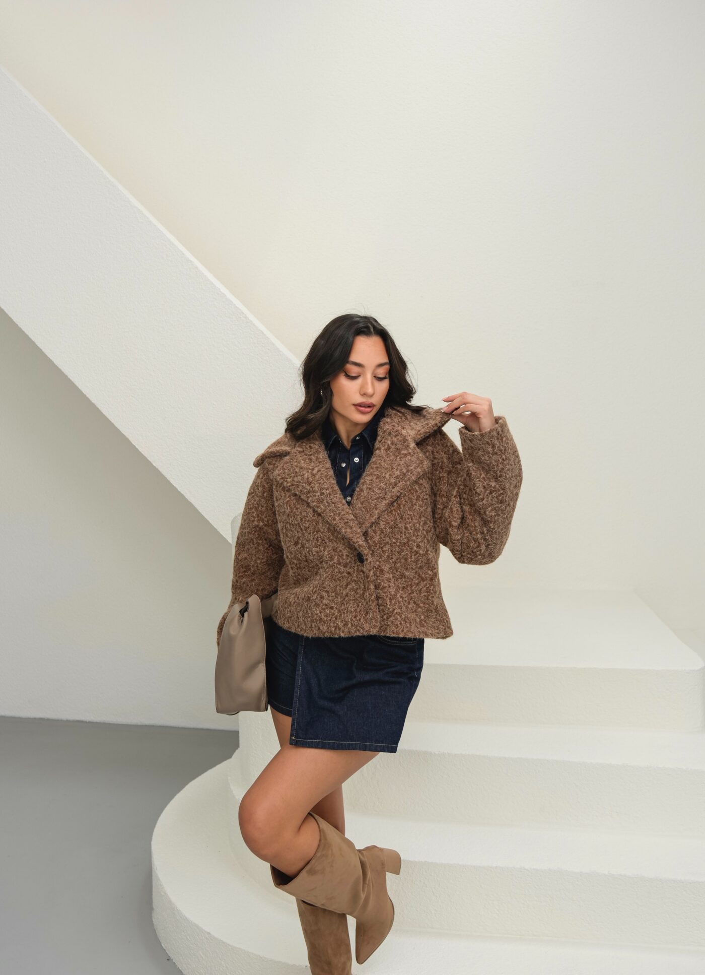 Kapsül Gardırop Kısa Kaşe Tek Düğme Ceket/Mont – Kahverengi