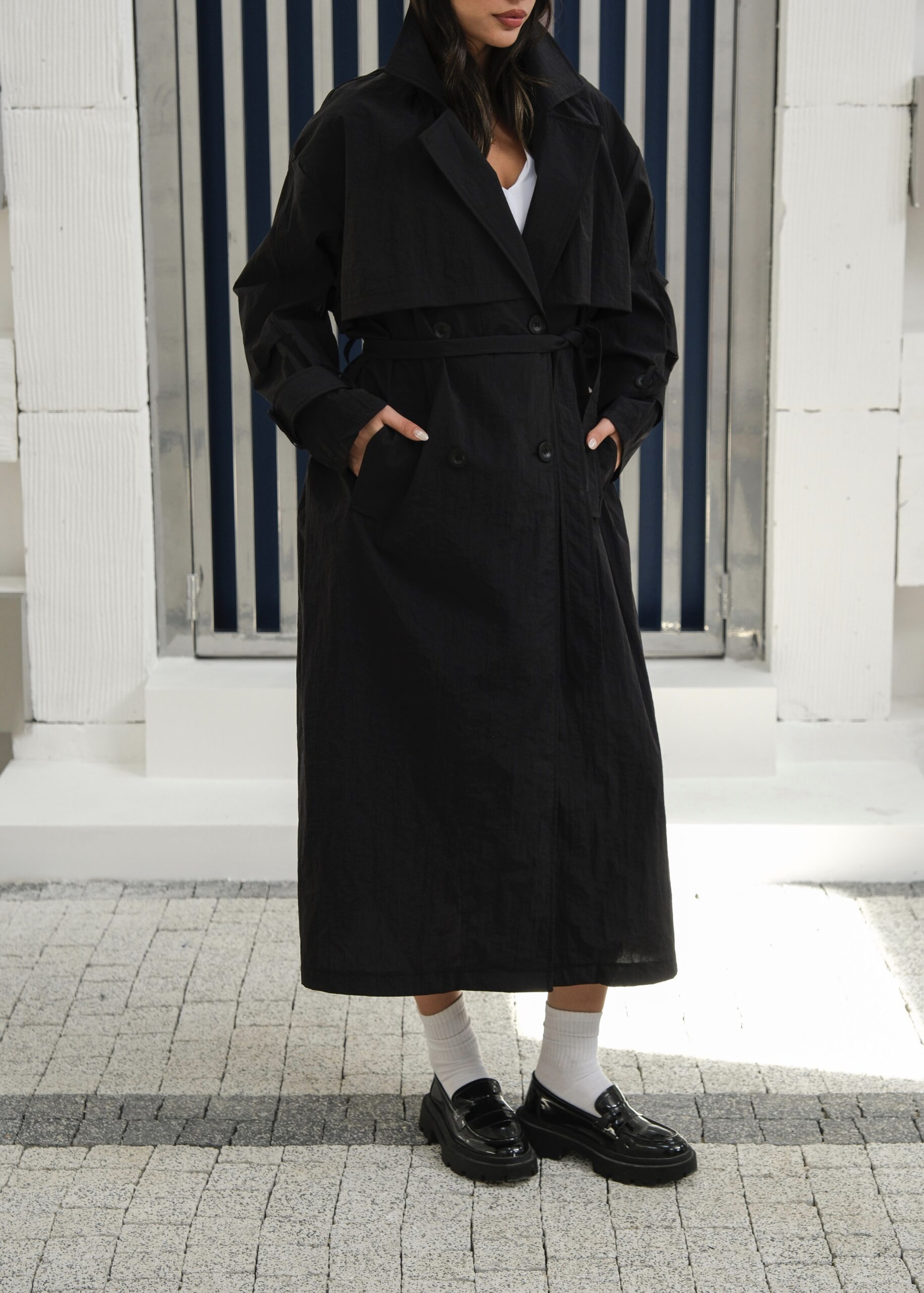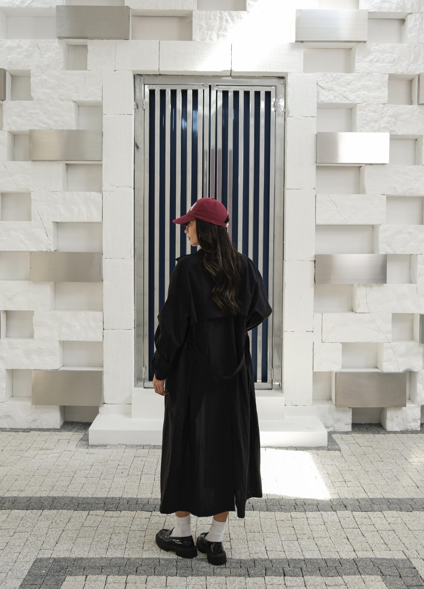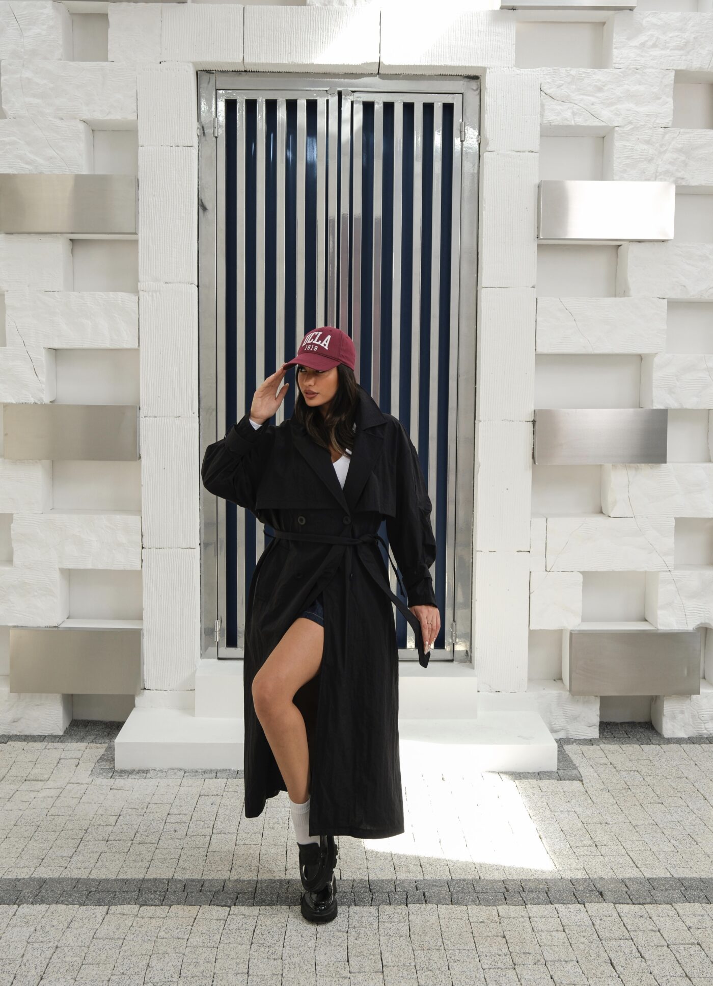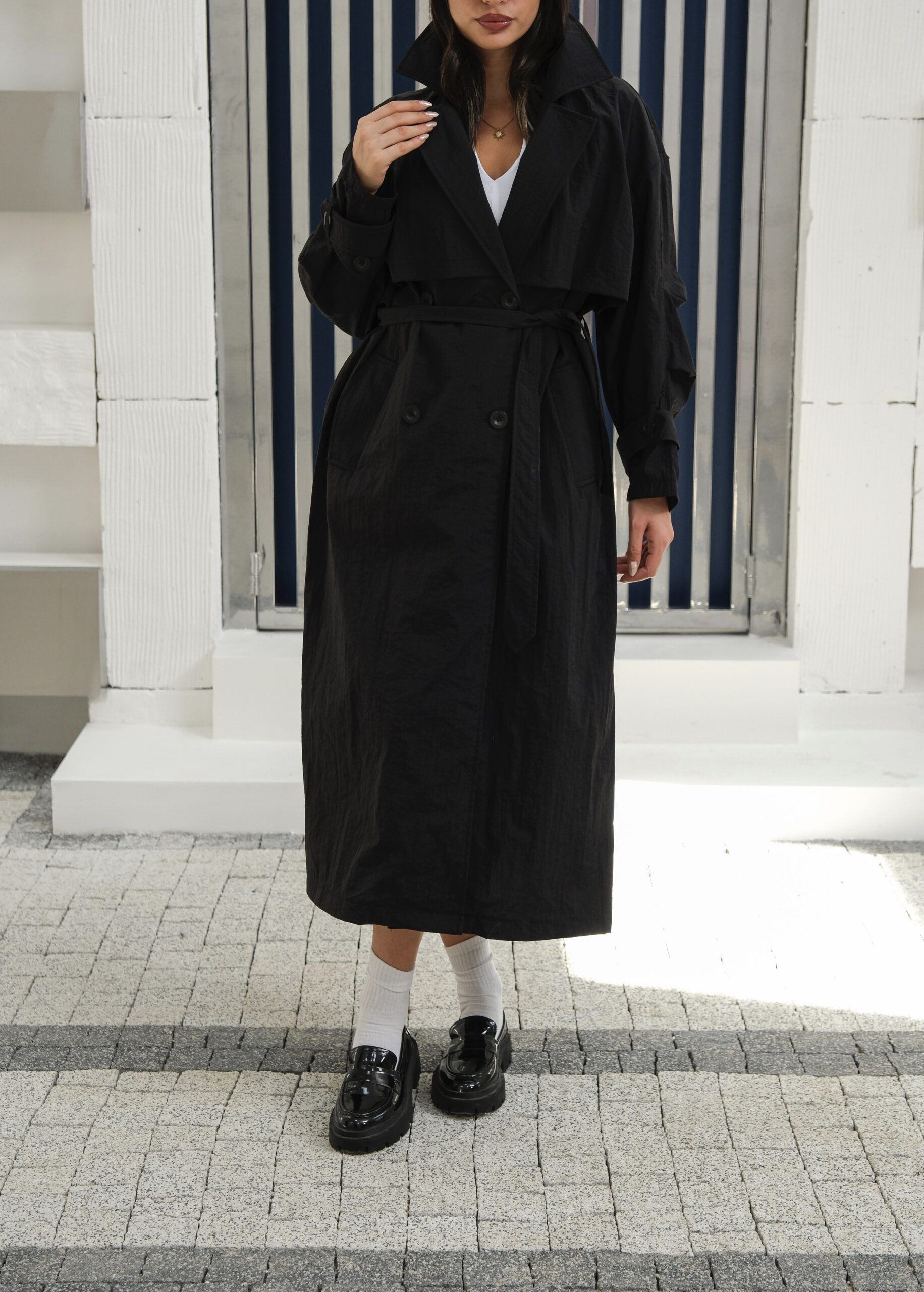 Kapsül Gardırop Kuşaklı Oversize Trench Coat – Siyah