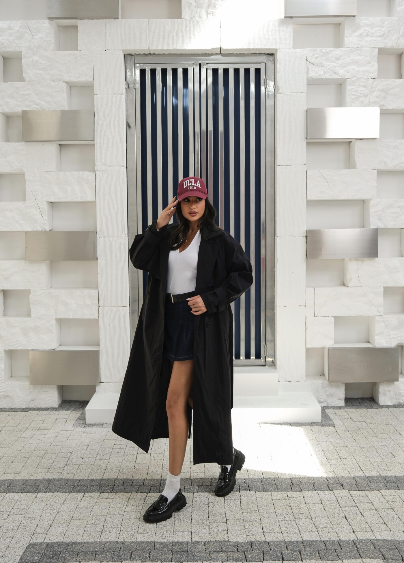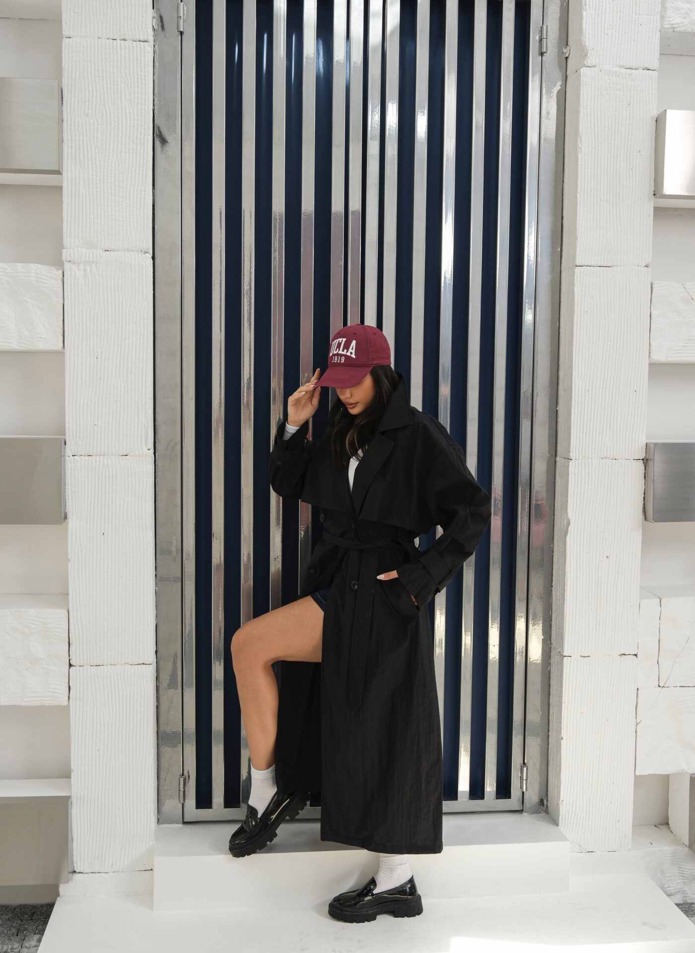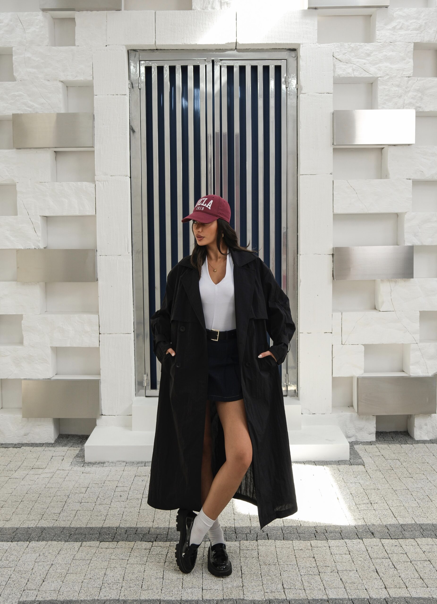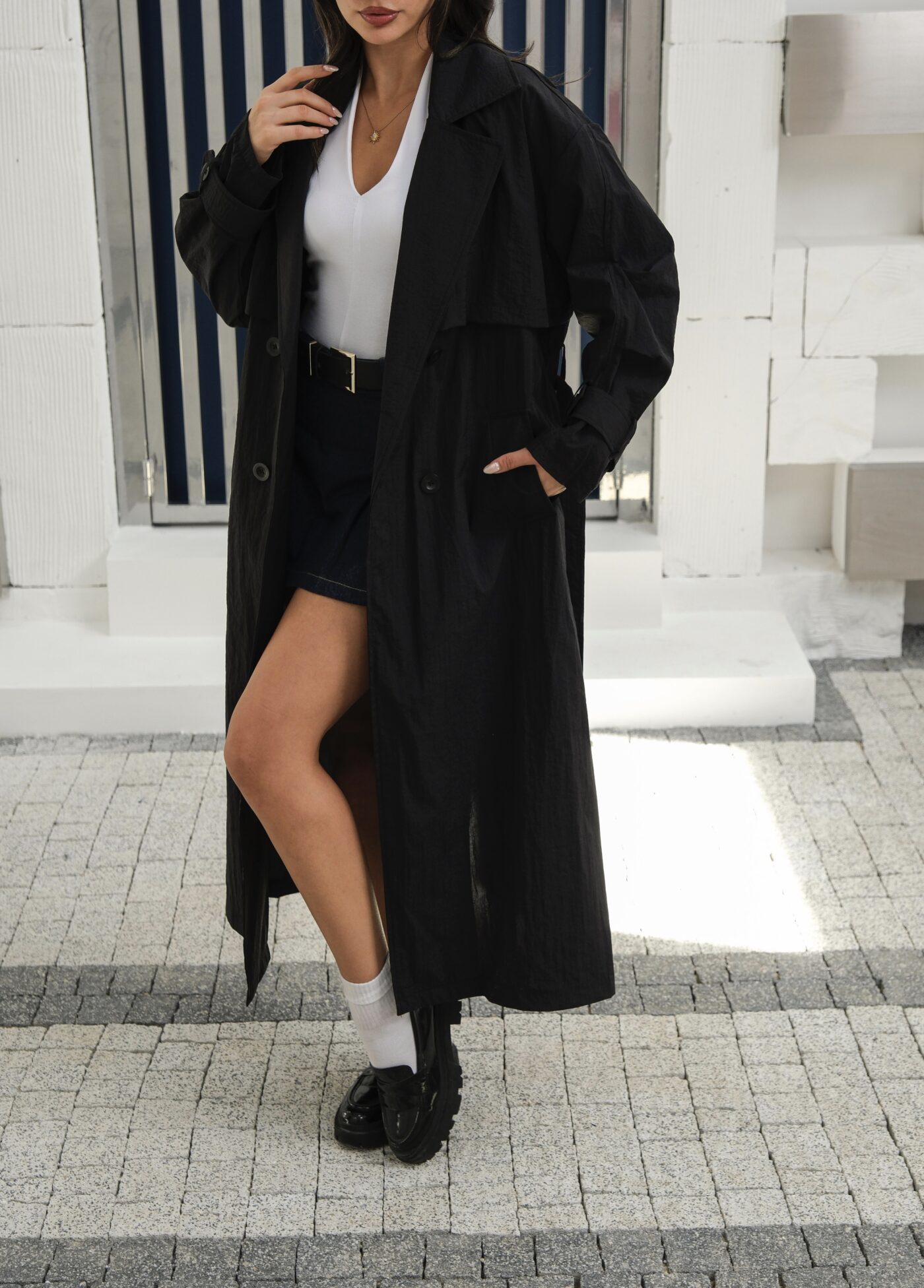 Kapsül Gardırop Kuşaklı Oversize Trench Coat – Siyah
