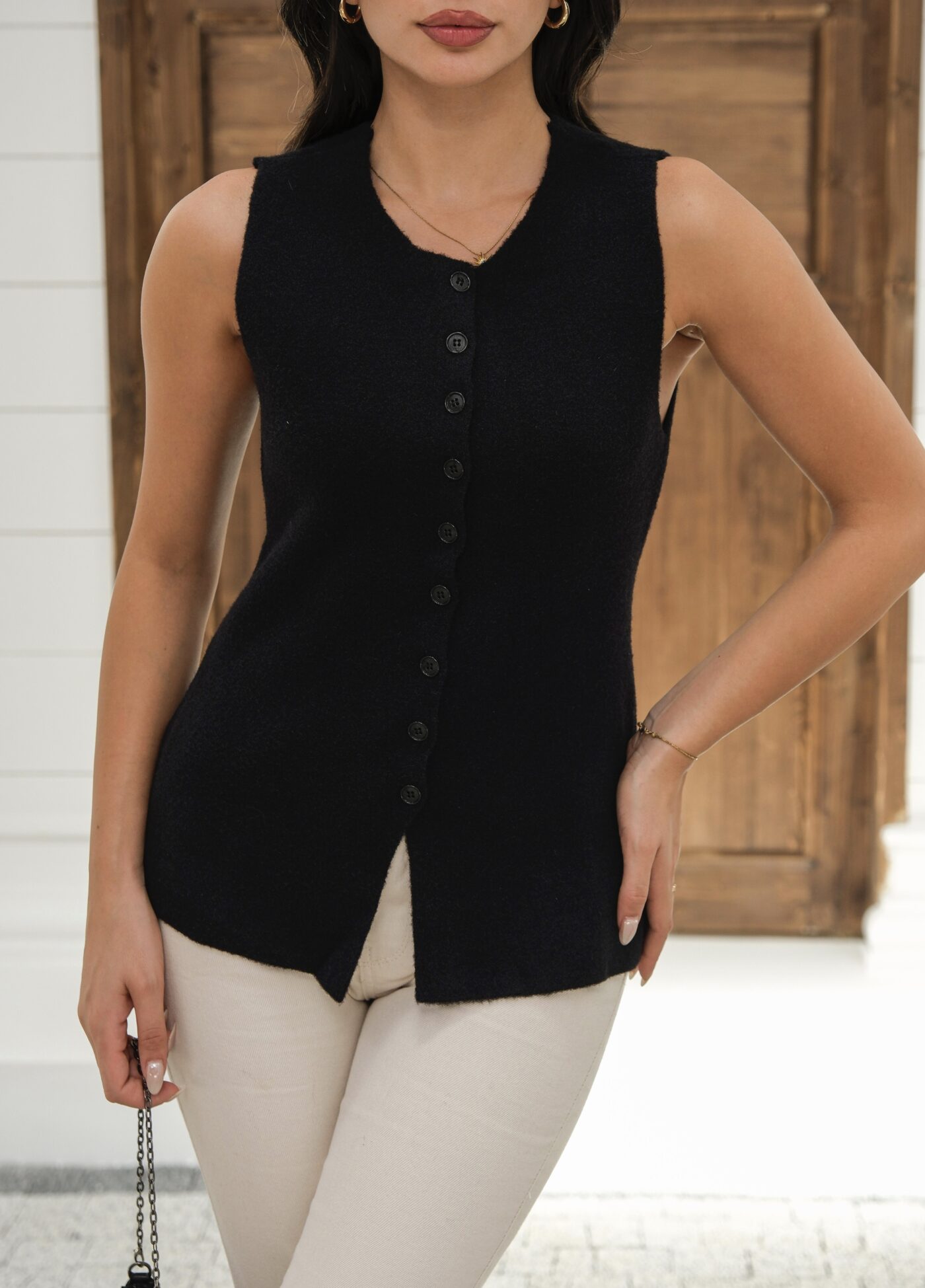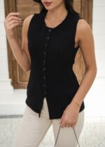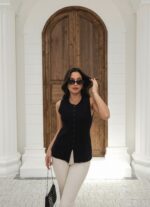 Kapsül Gardırop Midi Premium Triko Yelek – Siyah