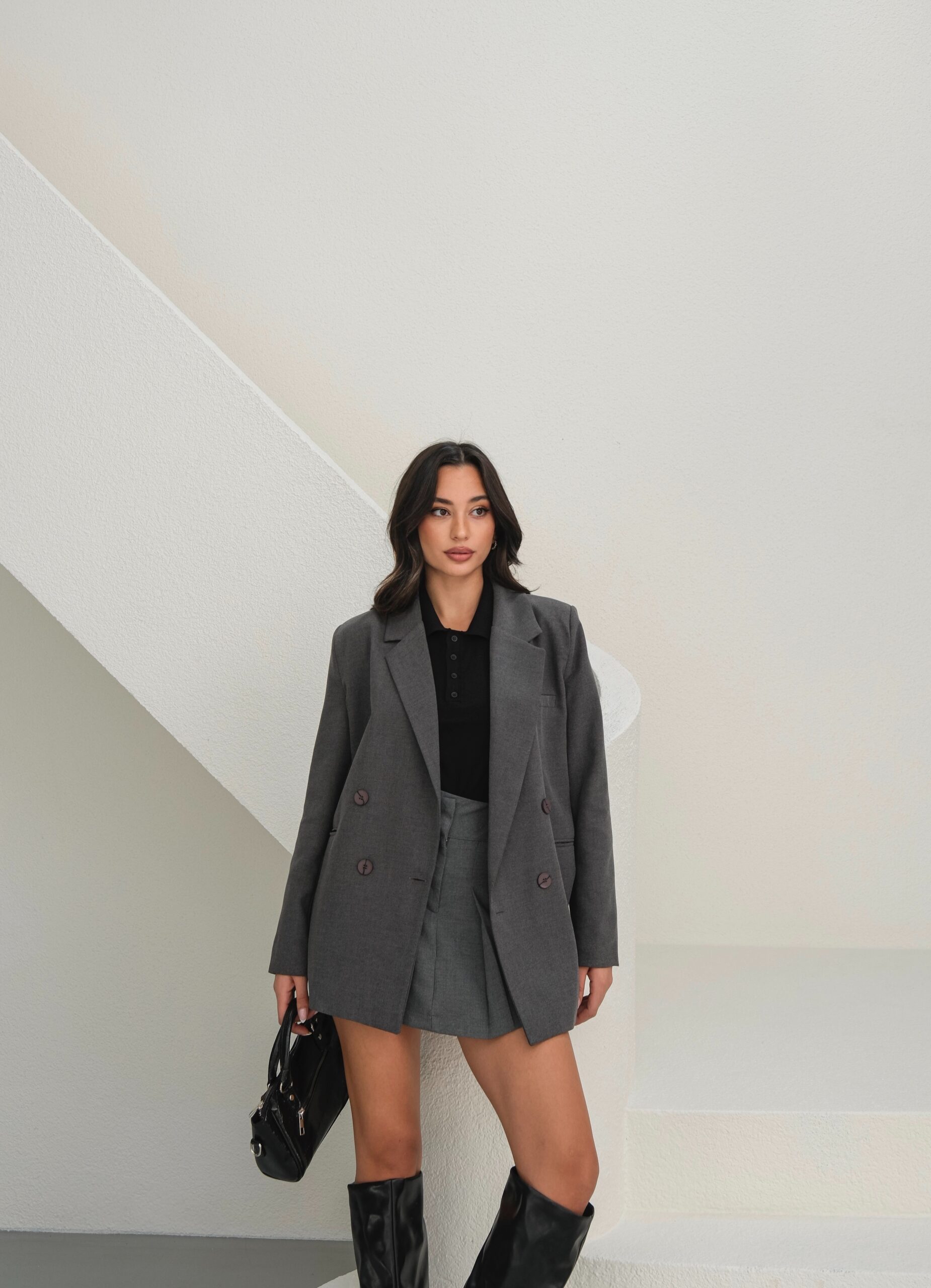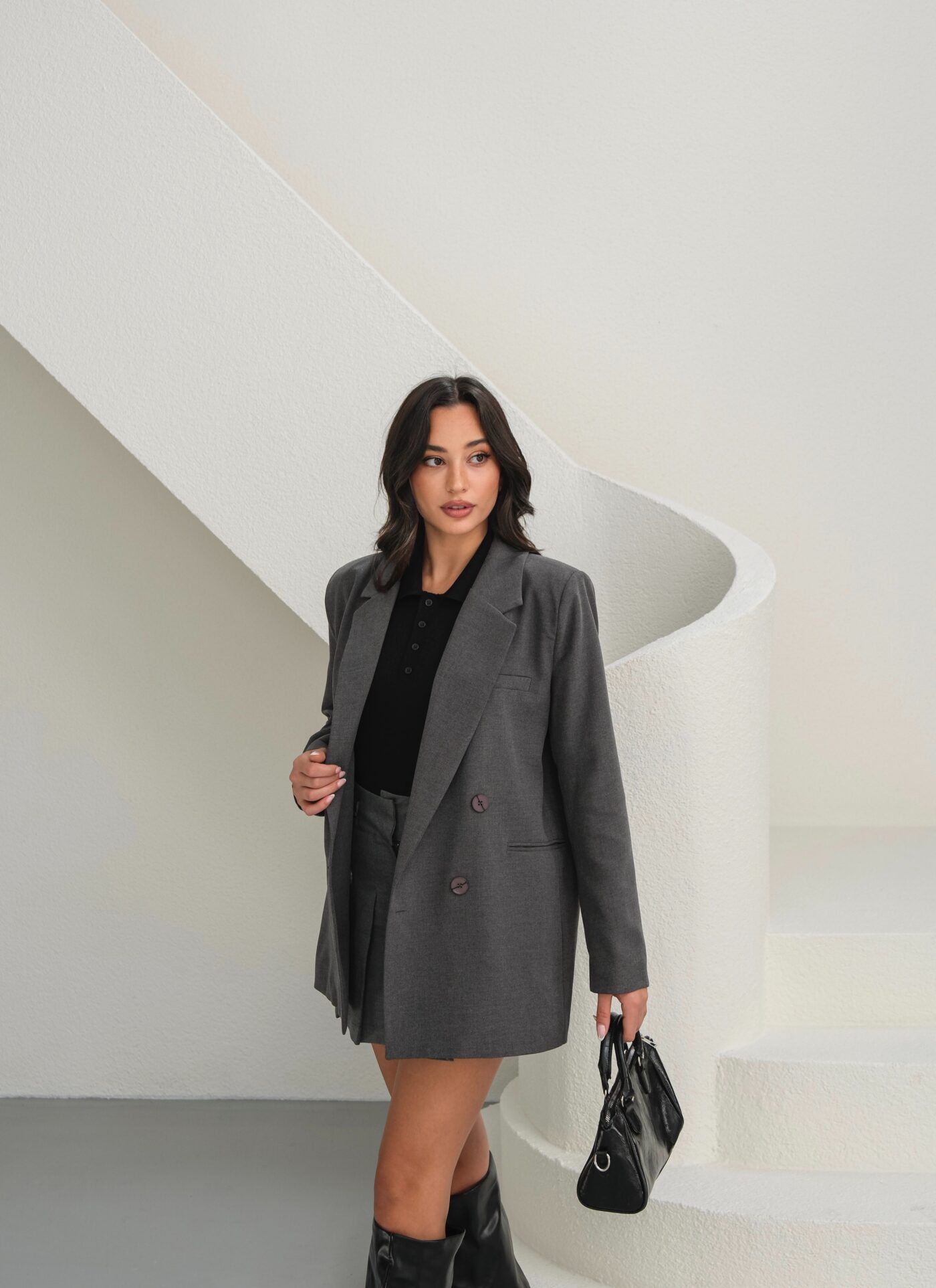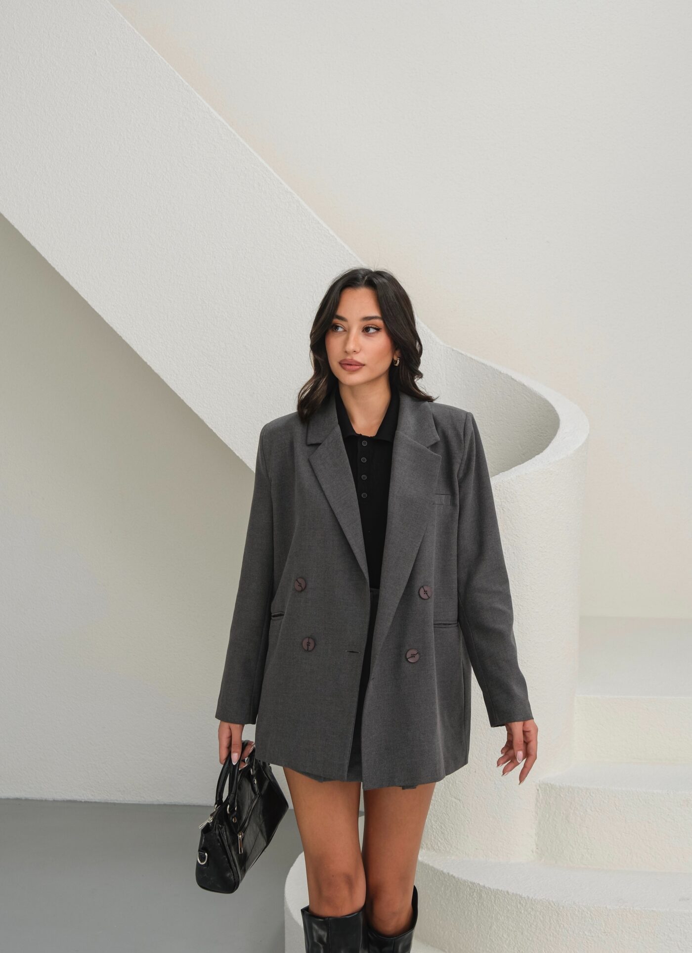 Kapsül Gardırop Oversize Kruvaze Ceket – Antrasit