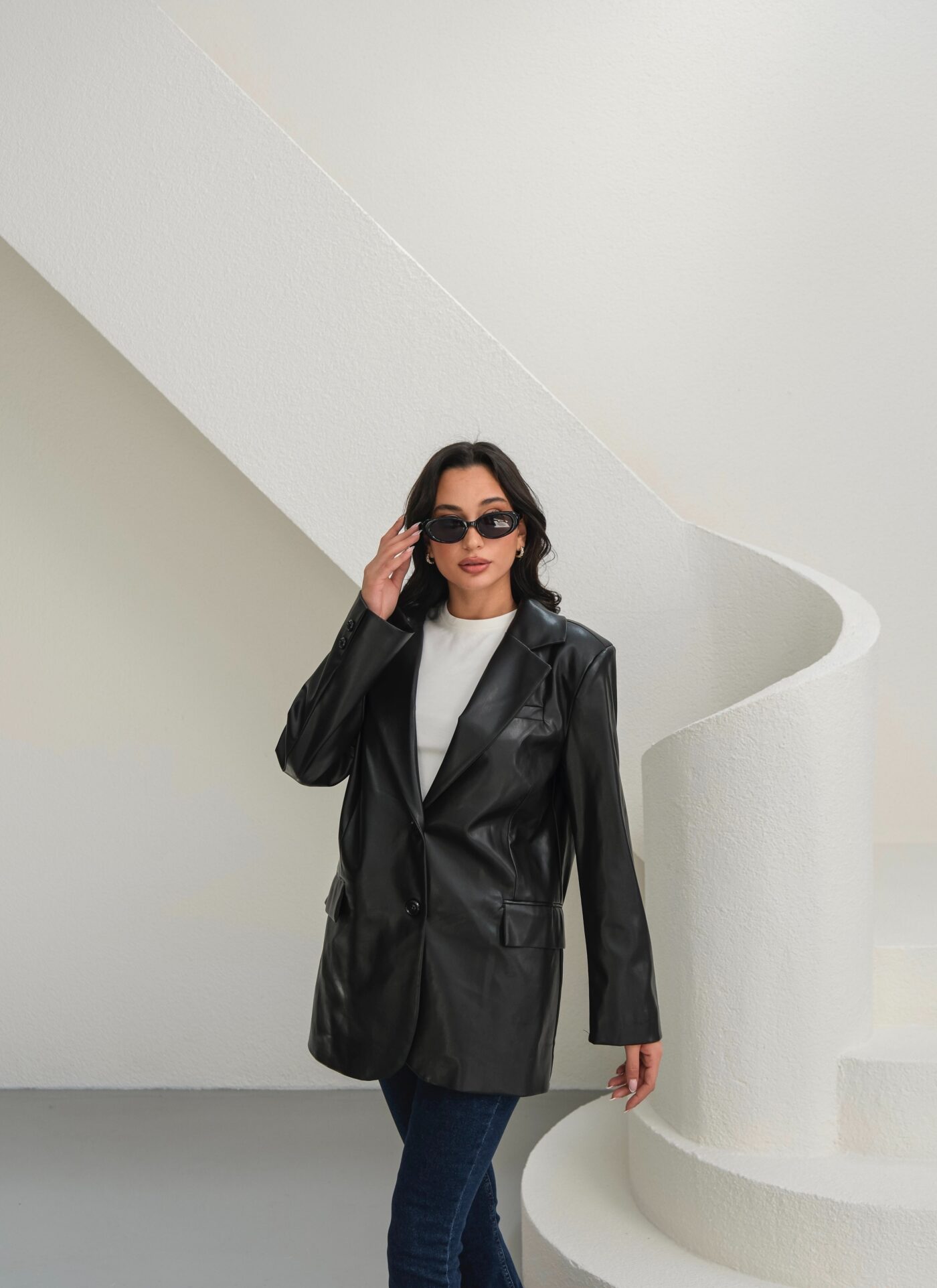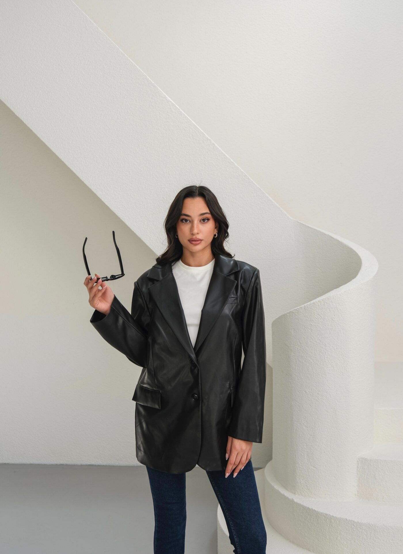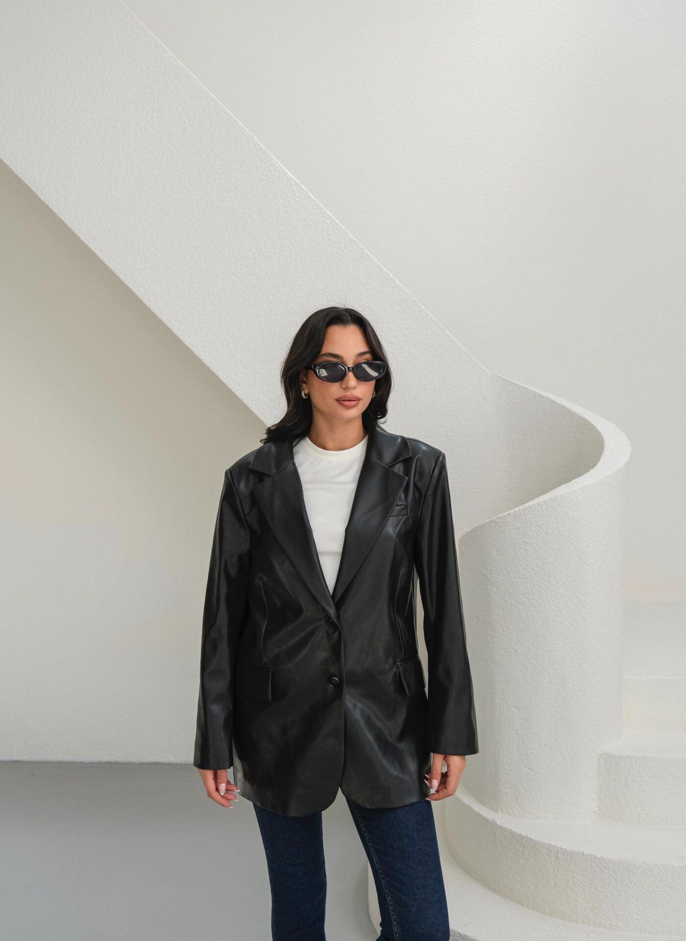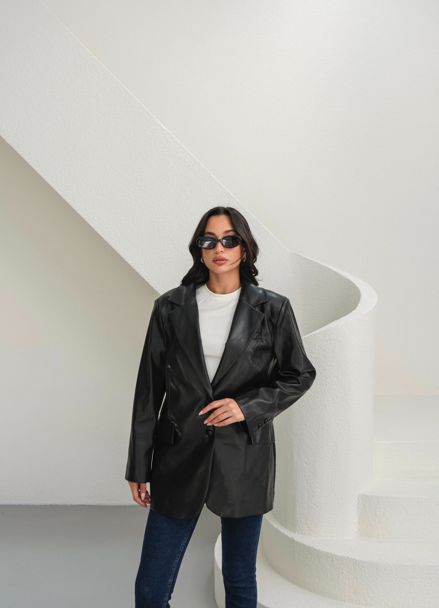 Kapsül Gardırop Suni Deri Blazer – Siyah
