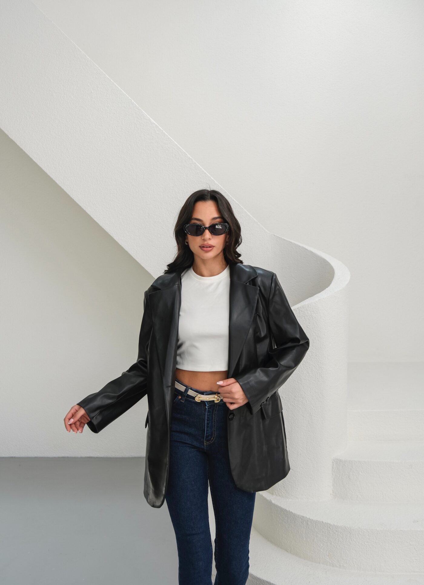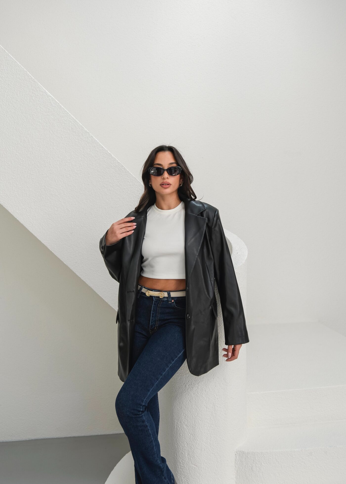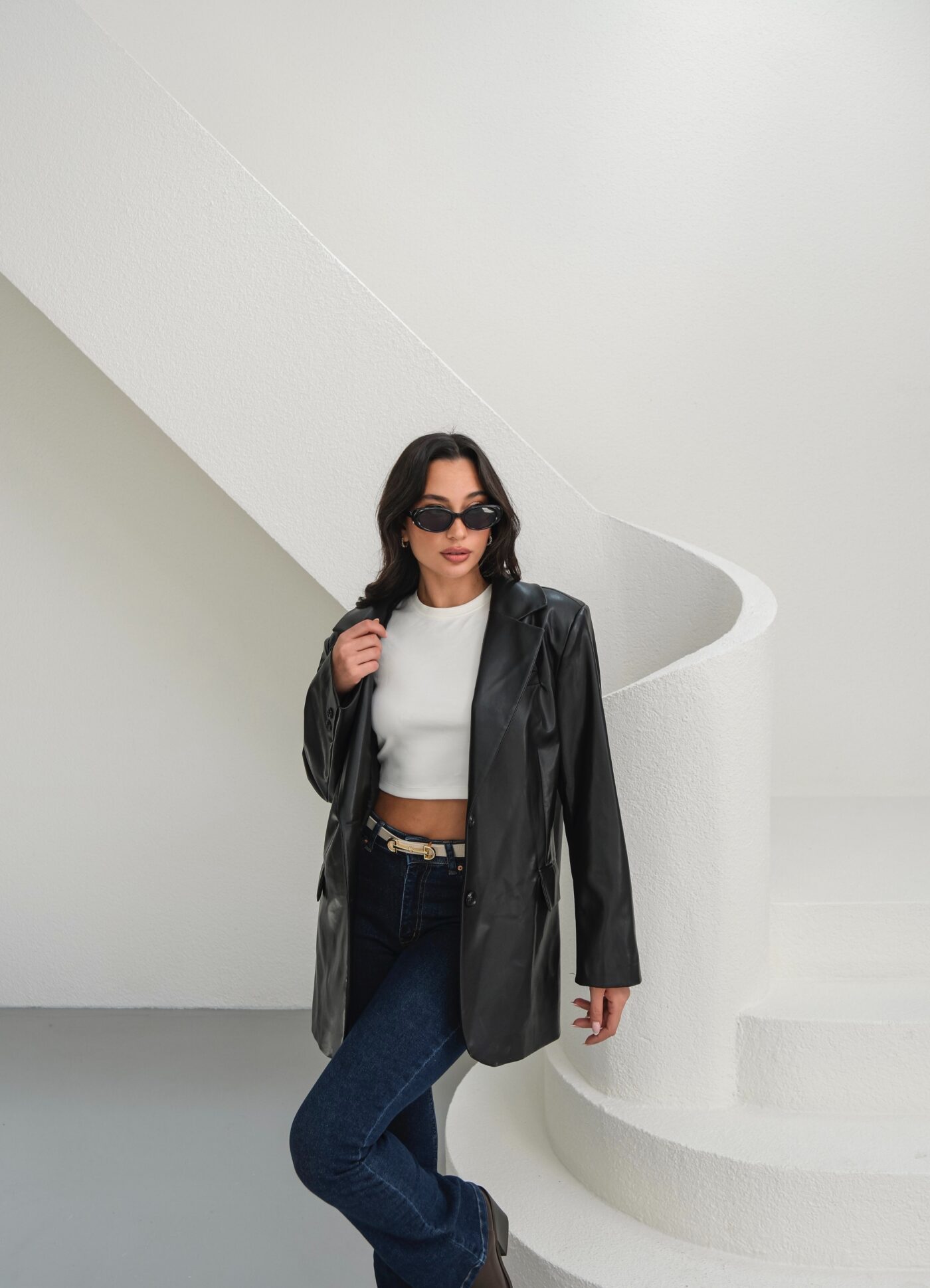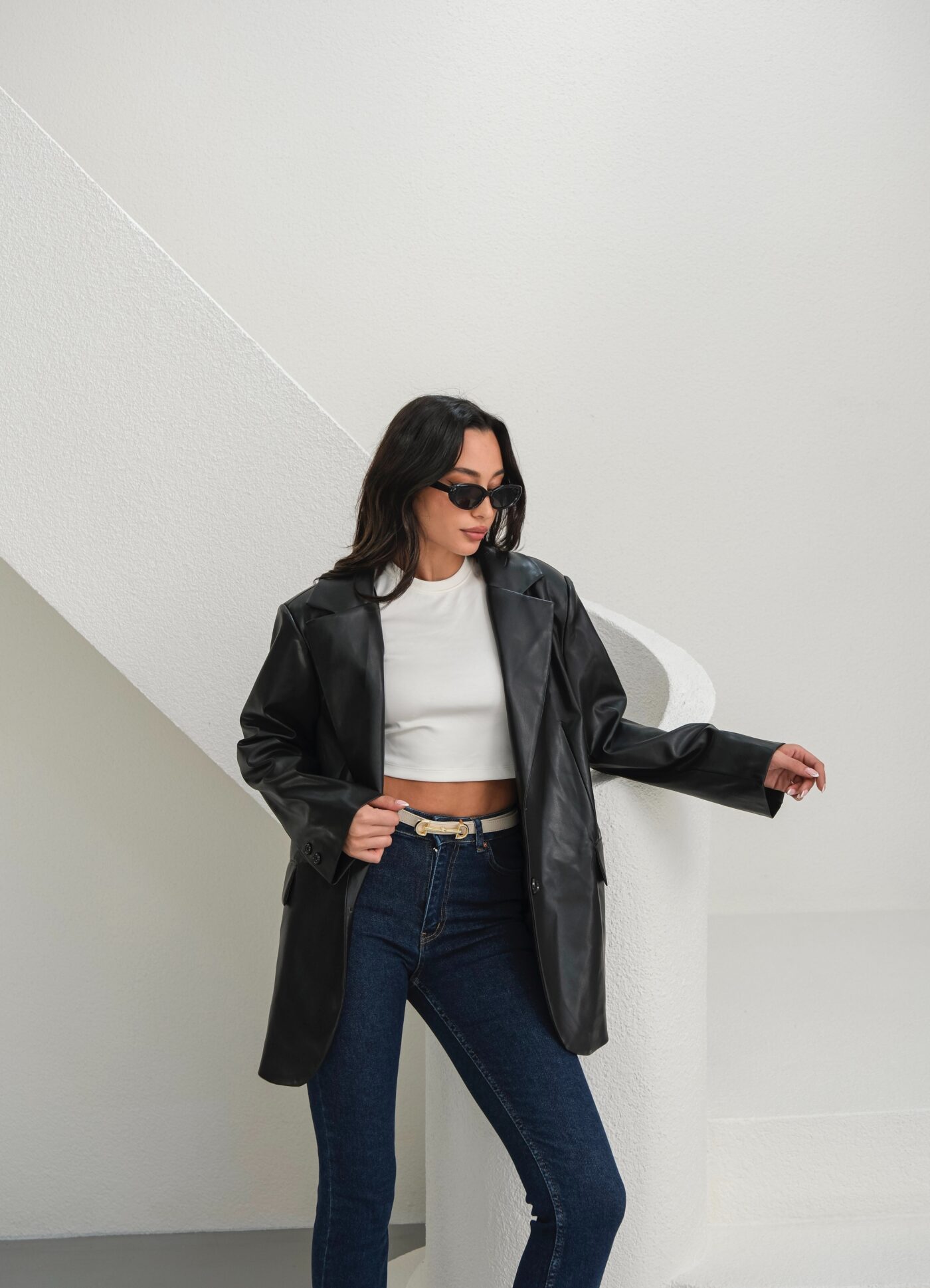 Kapsül Gardırop Suni Deri Blazer – Siyah