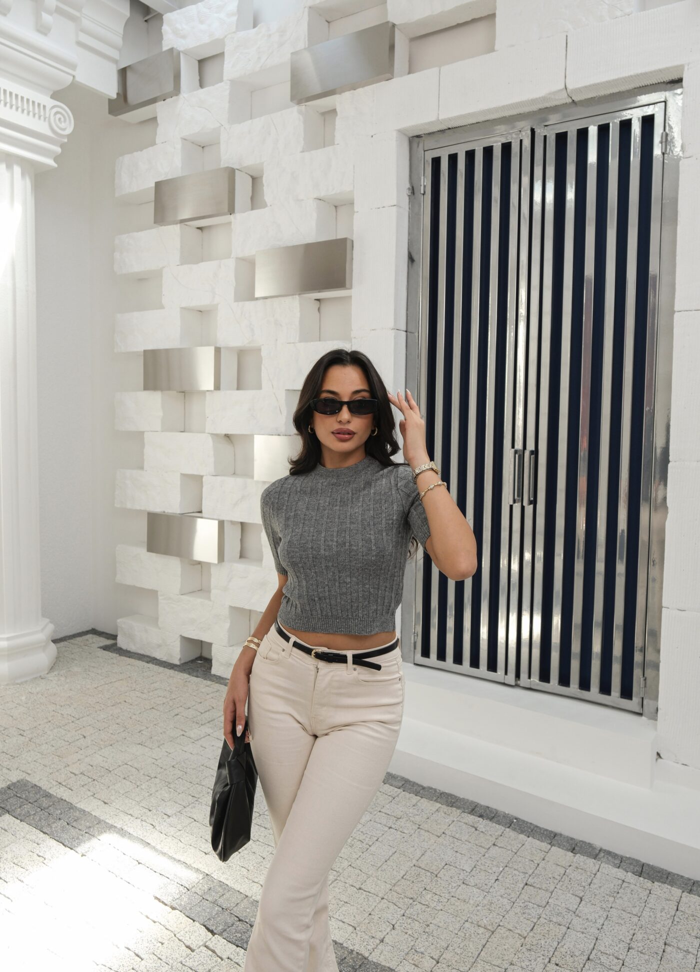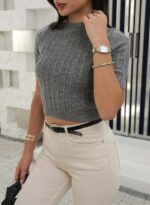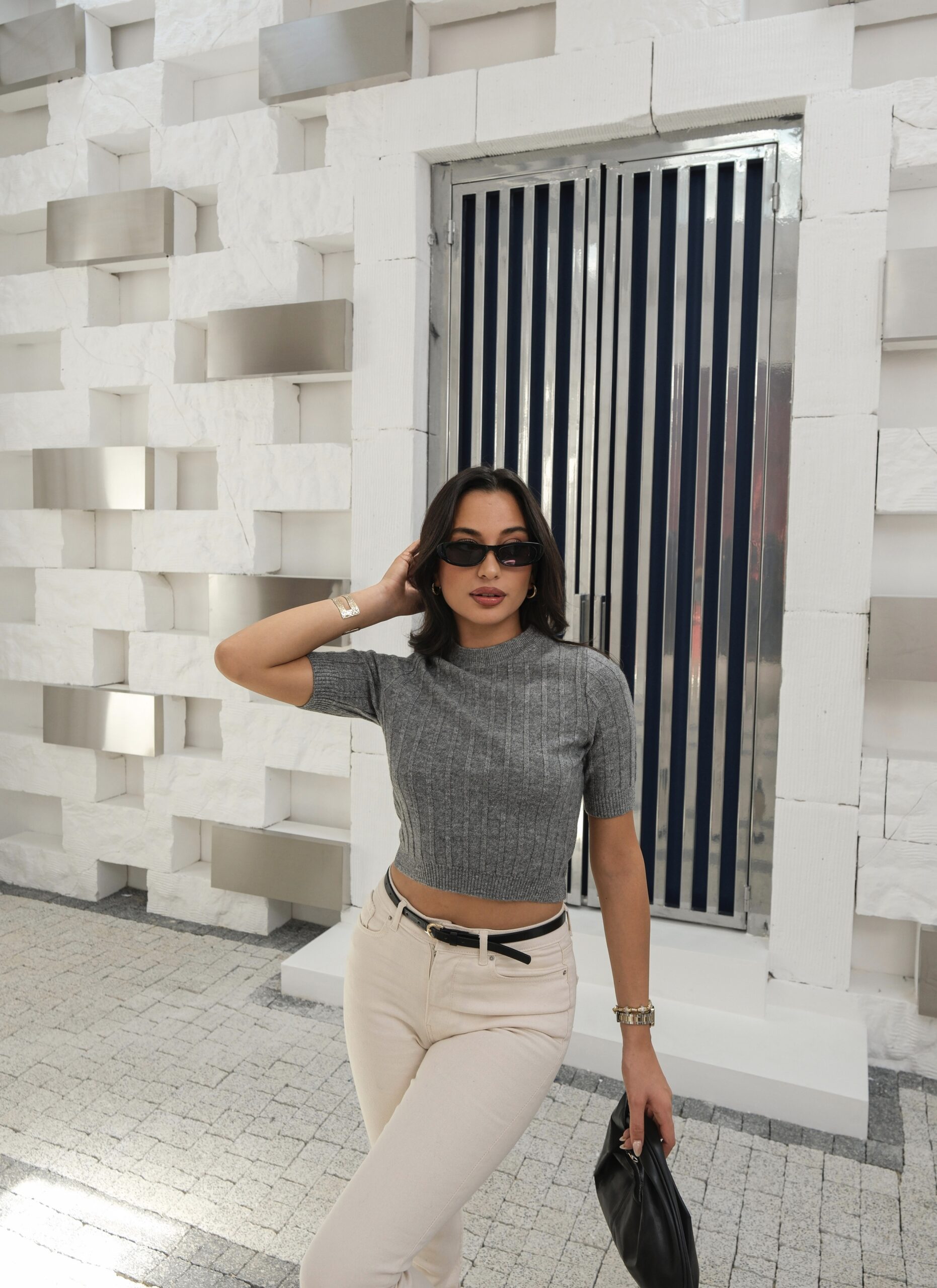 Kapsül Gardırop Yumuşak Dokulu Kısa Kol Kazak – Gri