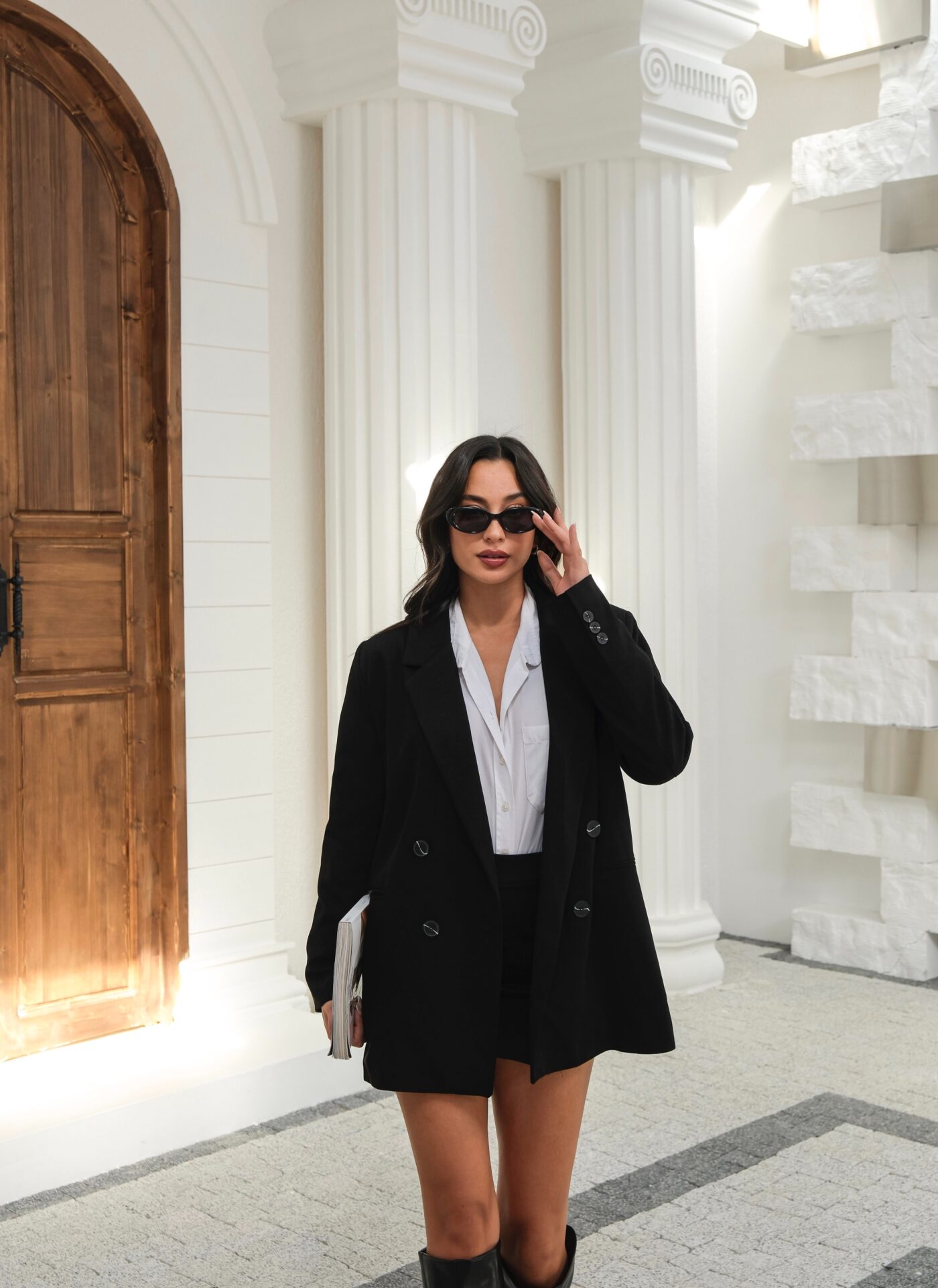 Kapsül Gardırop Oversize Kruvaze Ceket – Siyah