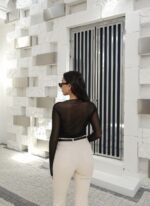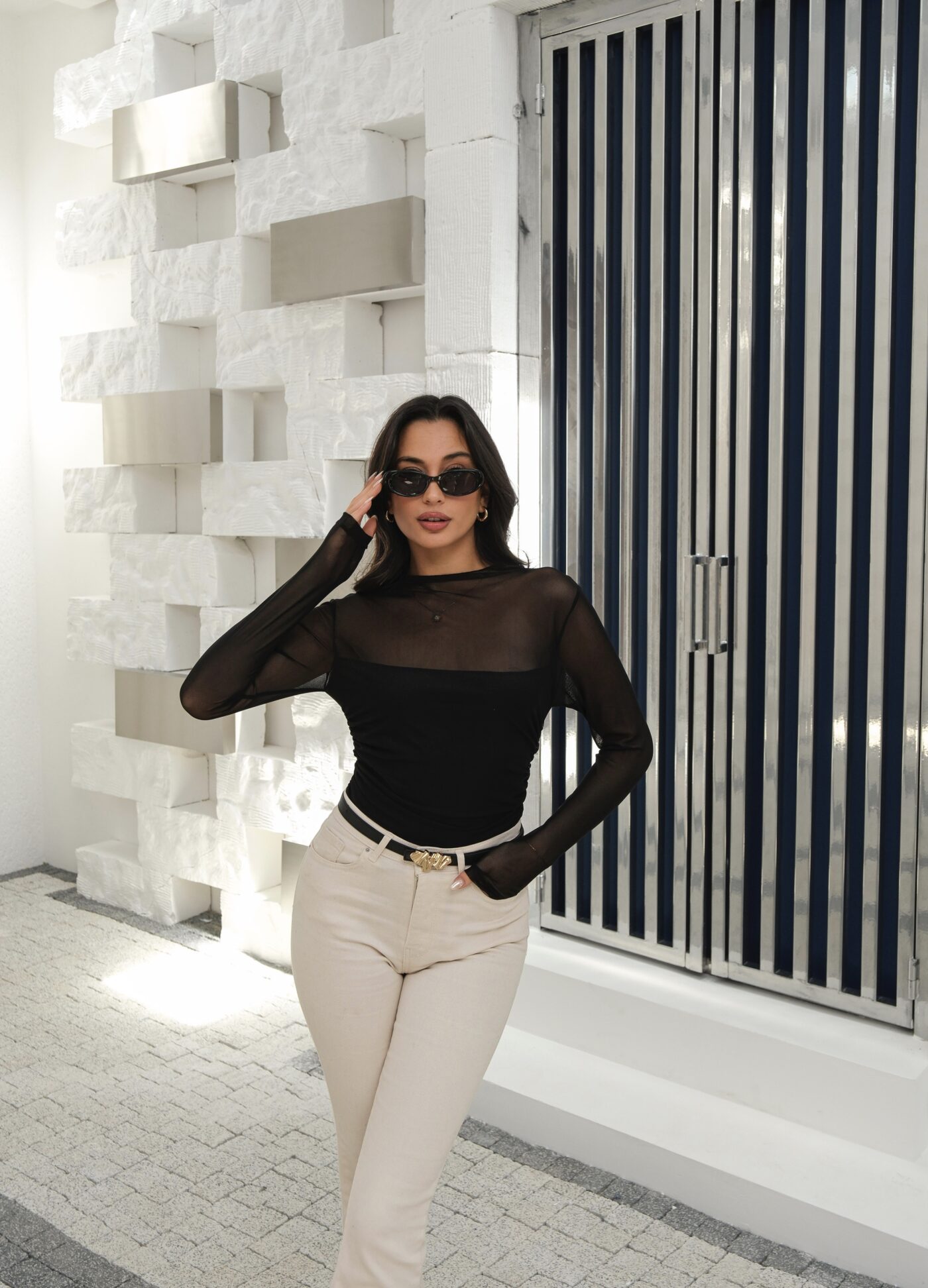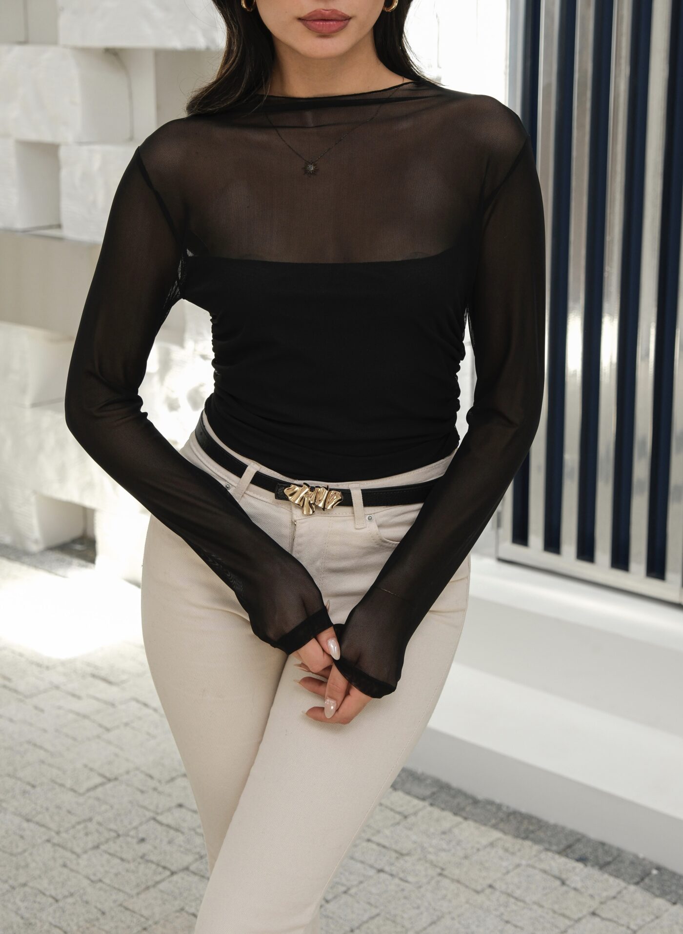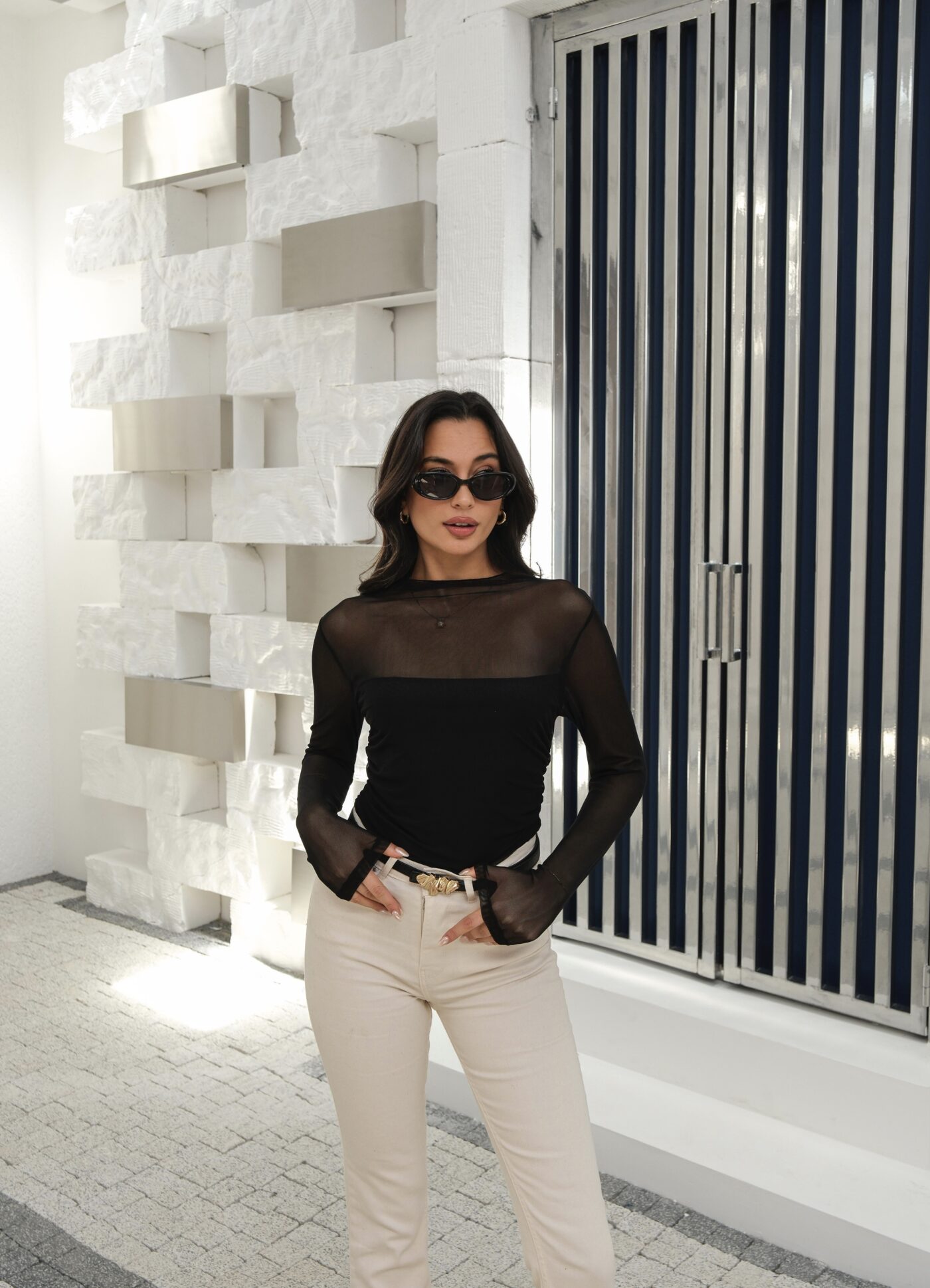 Kapsül Gardırop Siyah içi Atlet Detaylı Tül Bluz